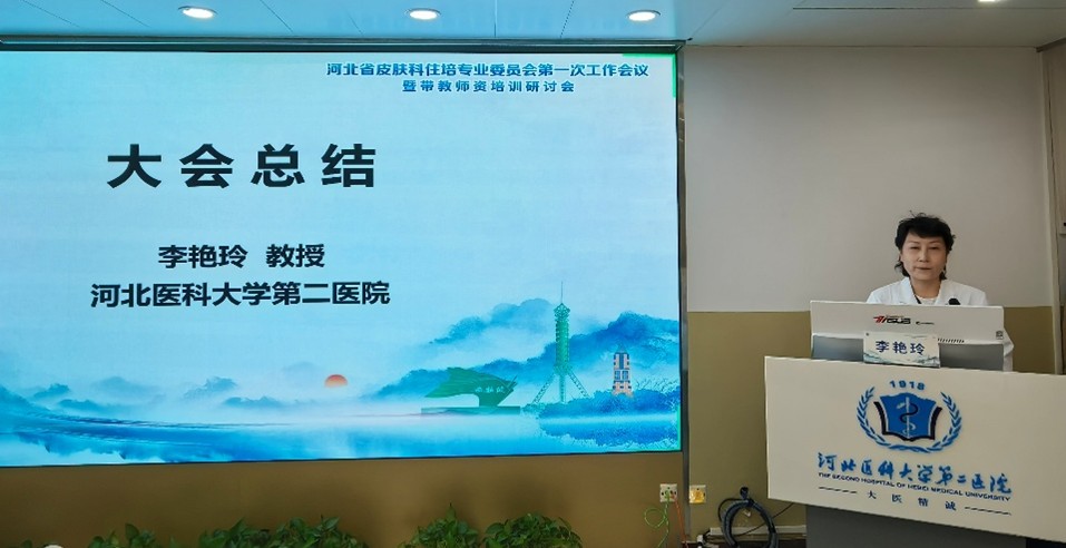 会议最后,我院李艳玲教授作总结发言。她指出,本次会议不仅是一次专业的培训,更是一次凝聚共识、激发动力的动员会。她希望各基地以此次会议为契机,进一步规范教学过程,强化师资队伍,以扎实的工作迎接国家评估,为培养更多优秀皮肤科医师贡献力量。