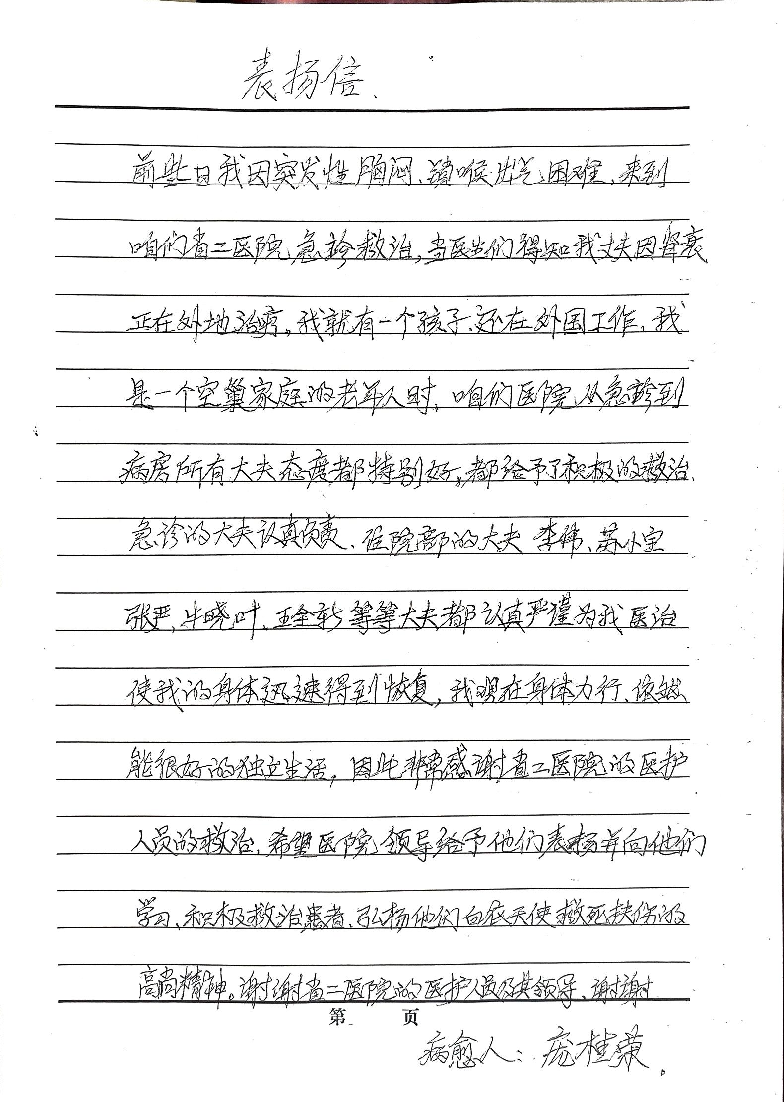 致鹿泉院区普外一科刘龙龙医生的感谢信