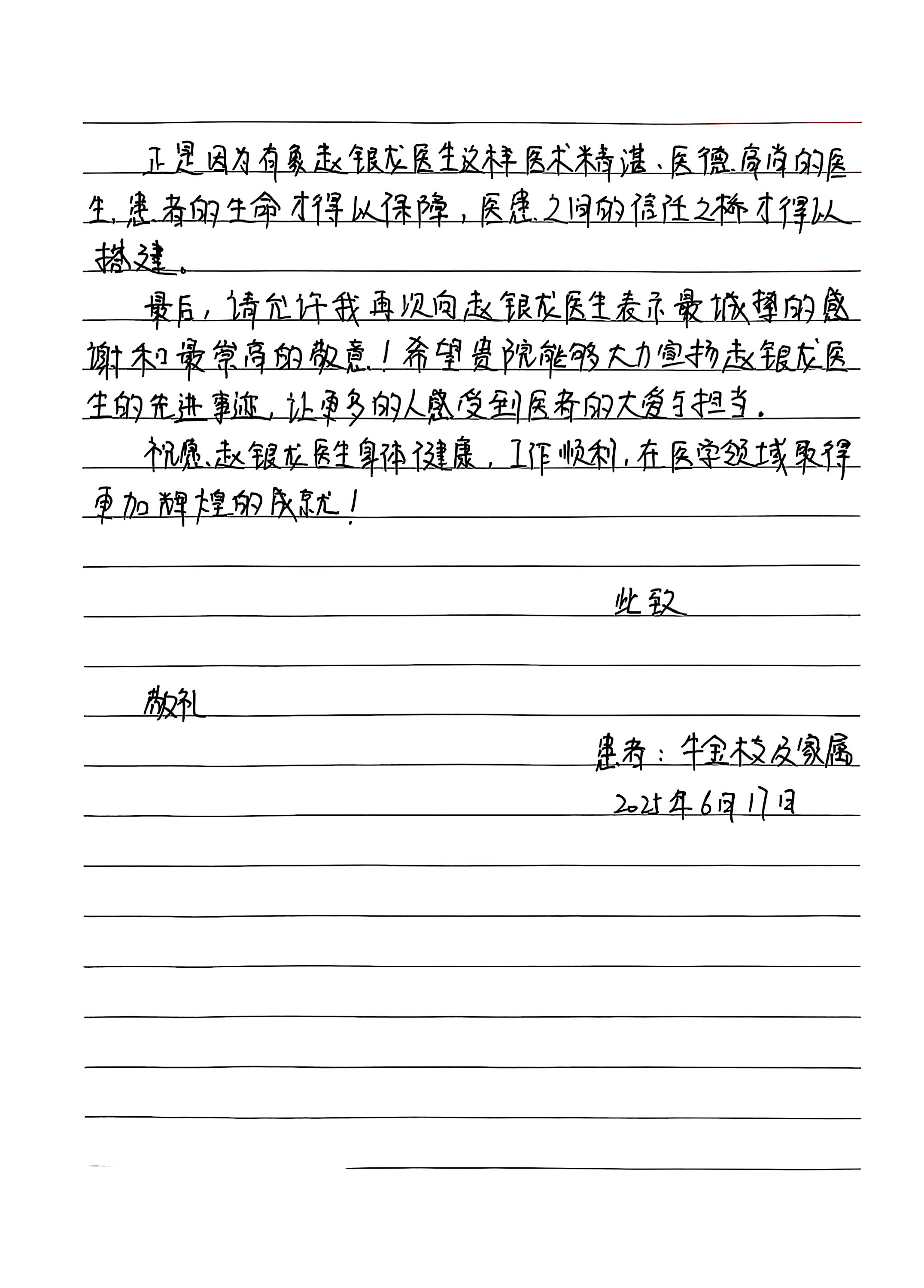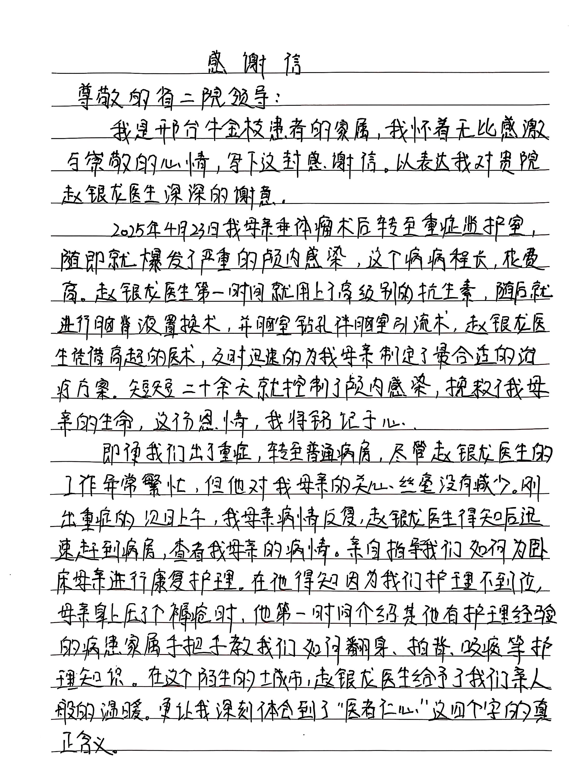 致鹿泉院区重症监护室赵银龙医生的感谢信