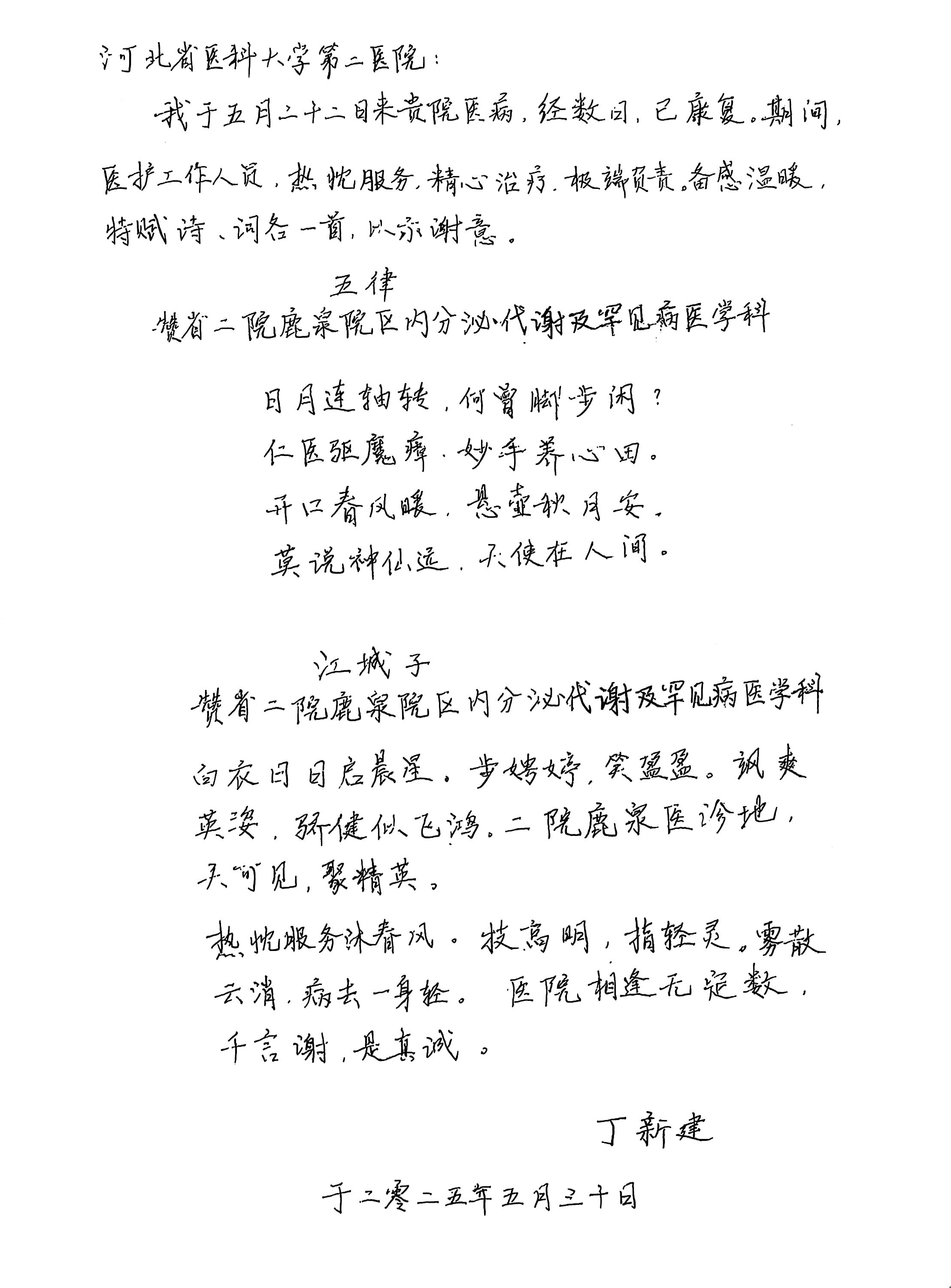 致鹿泉院区内分泌代谢及罕见病医学科的感谢信