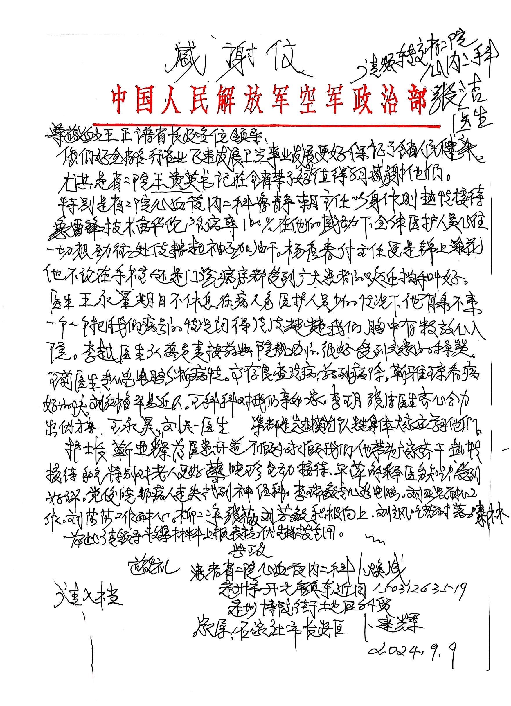 致心血管内二科鲁静朝主任及其团队的感谢信