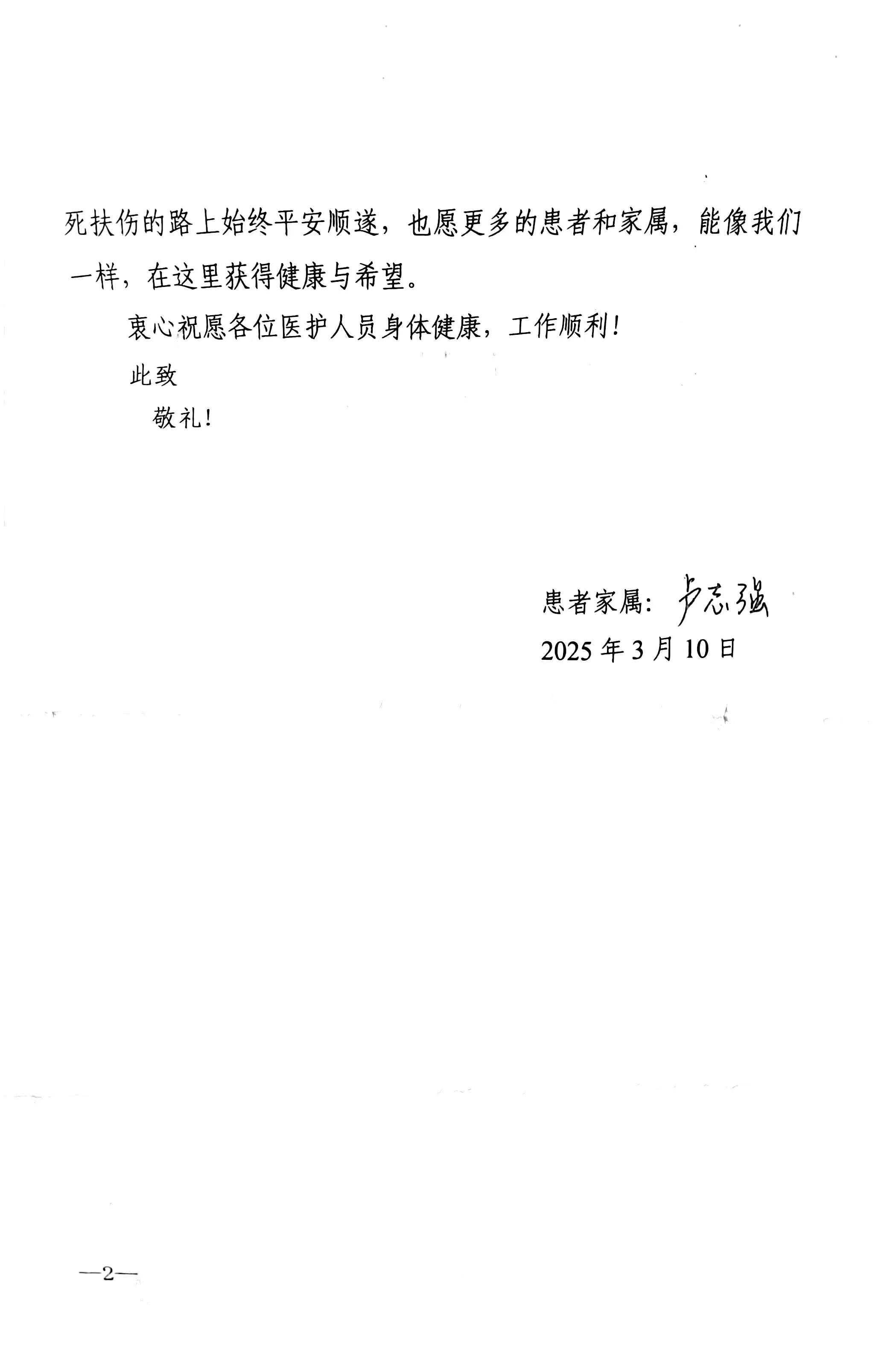 致神经外科二病区杨建凯医生的感谢信