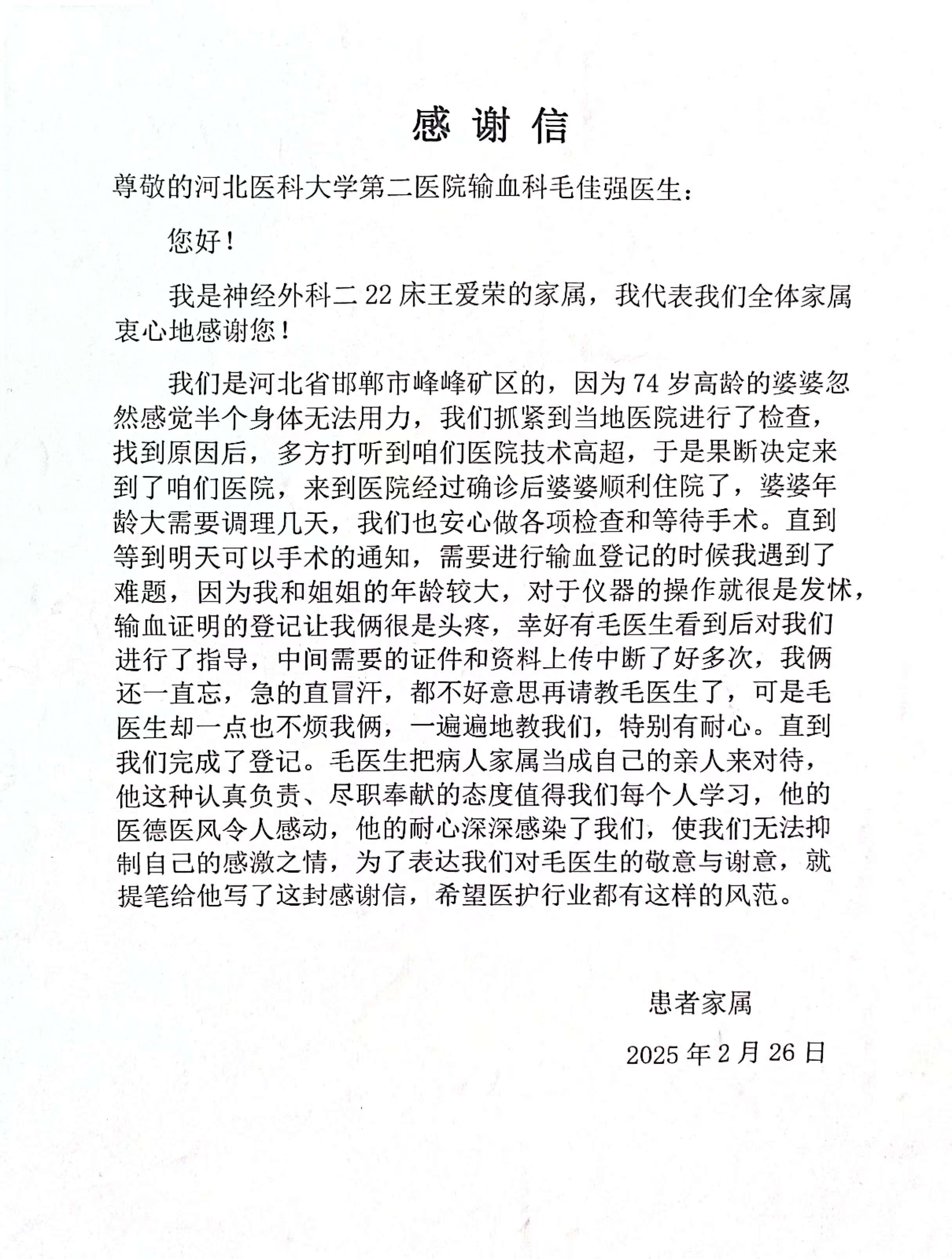 致心血管二科陈会强主任、张云燕护士的感谢信