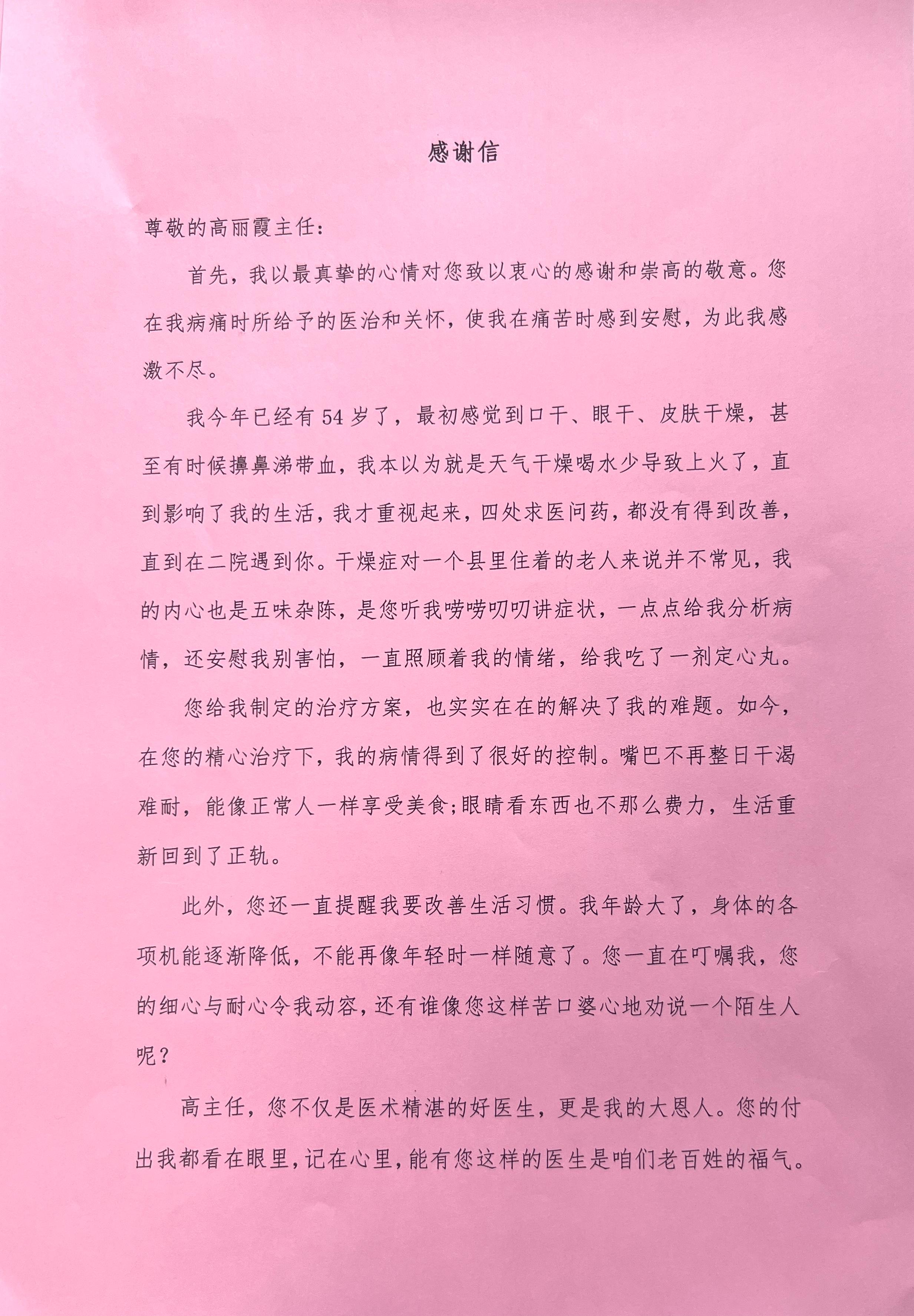致泌尿外科王东彬、张明主任及麻醉科黄立宁主任的感谢信