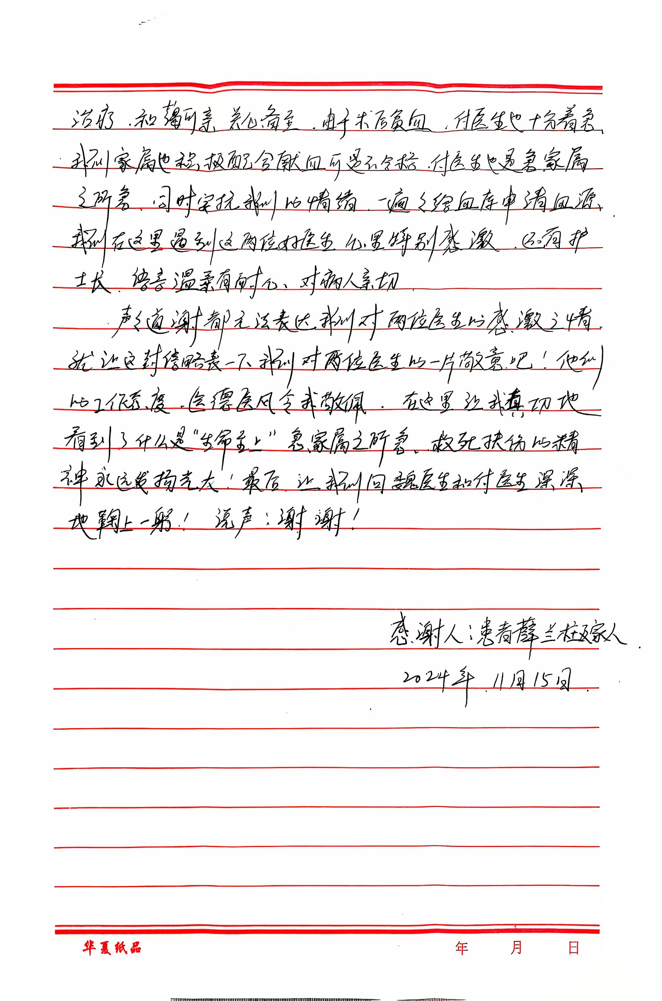 致普外七科魏浩飞医生及团队的感谢信