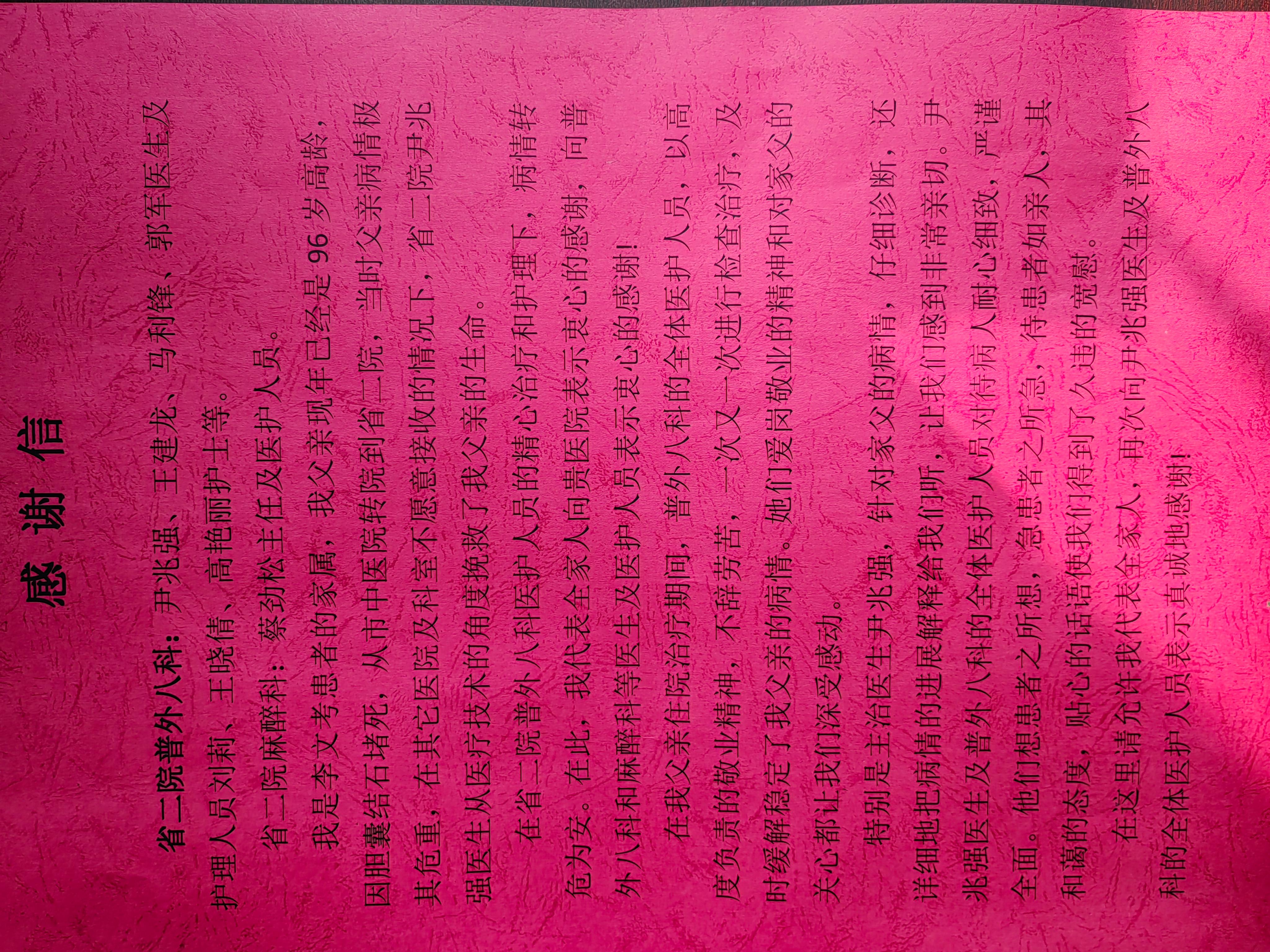致普外八科、麻醉科团队感谢信