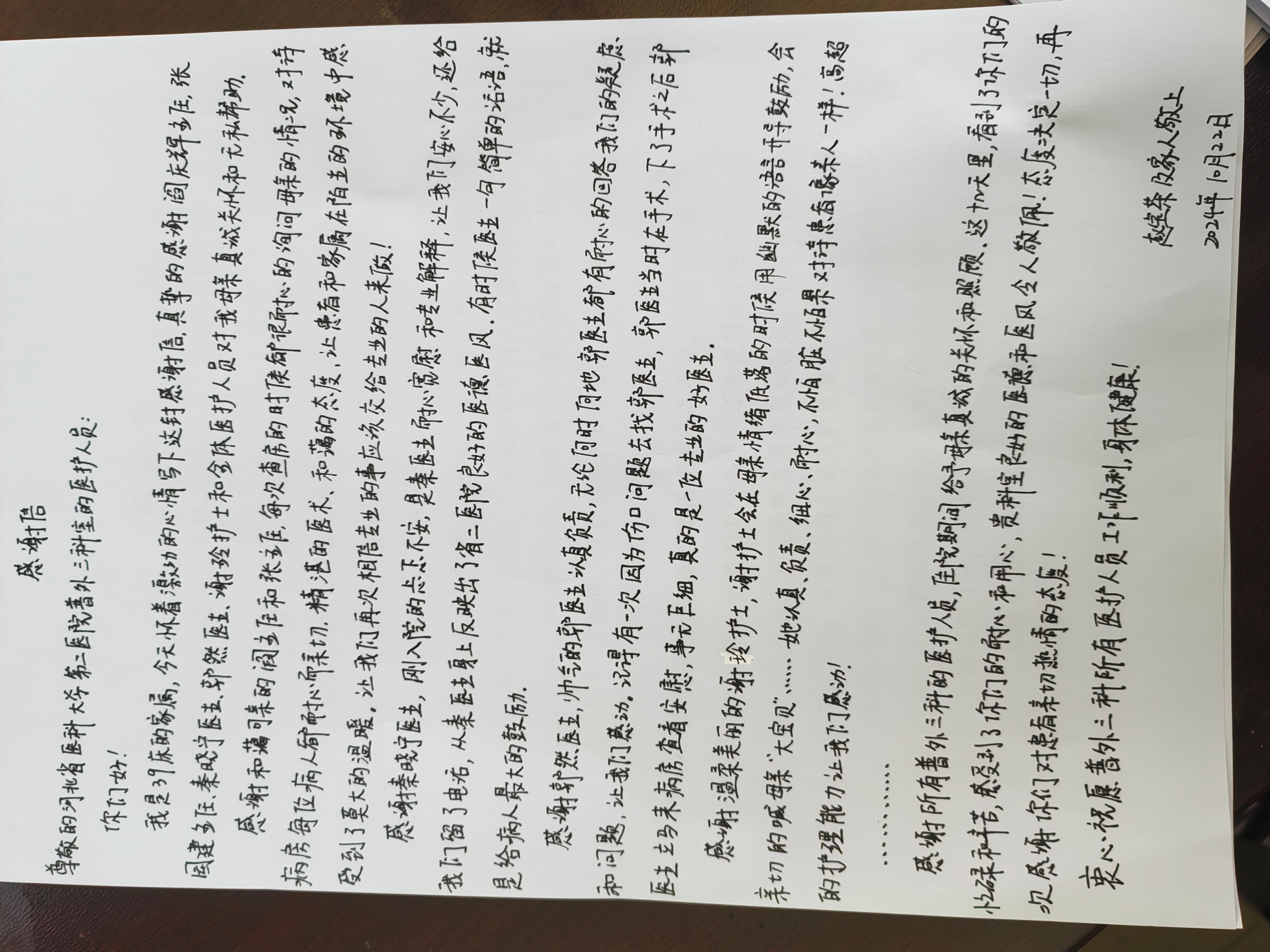 致耳鼻喉一科门诊护士韩海霞的感谢信