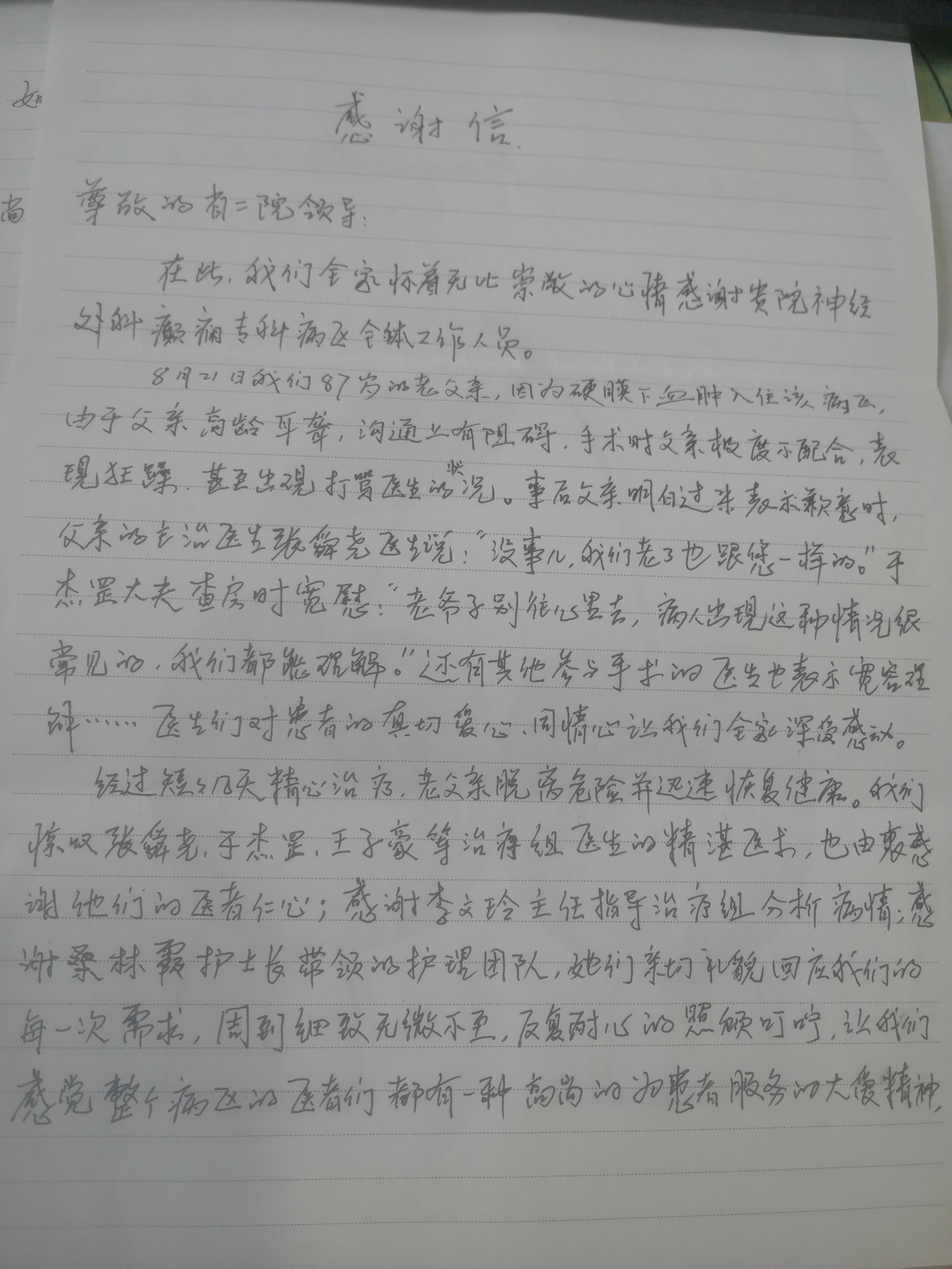 致神经外科癫痫专业李文玲主任医疗团队感谢信