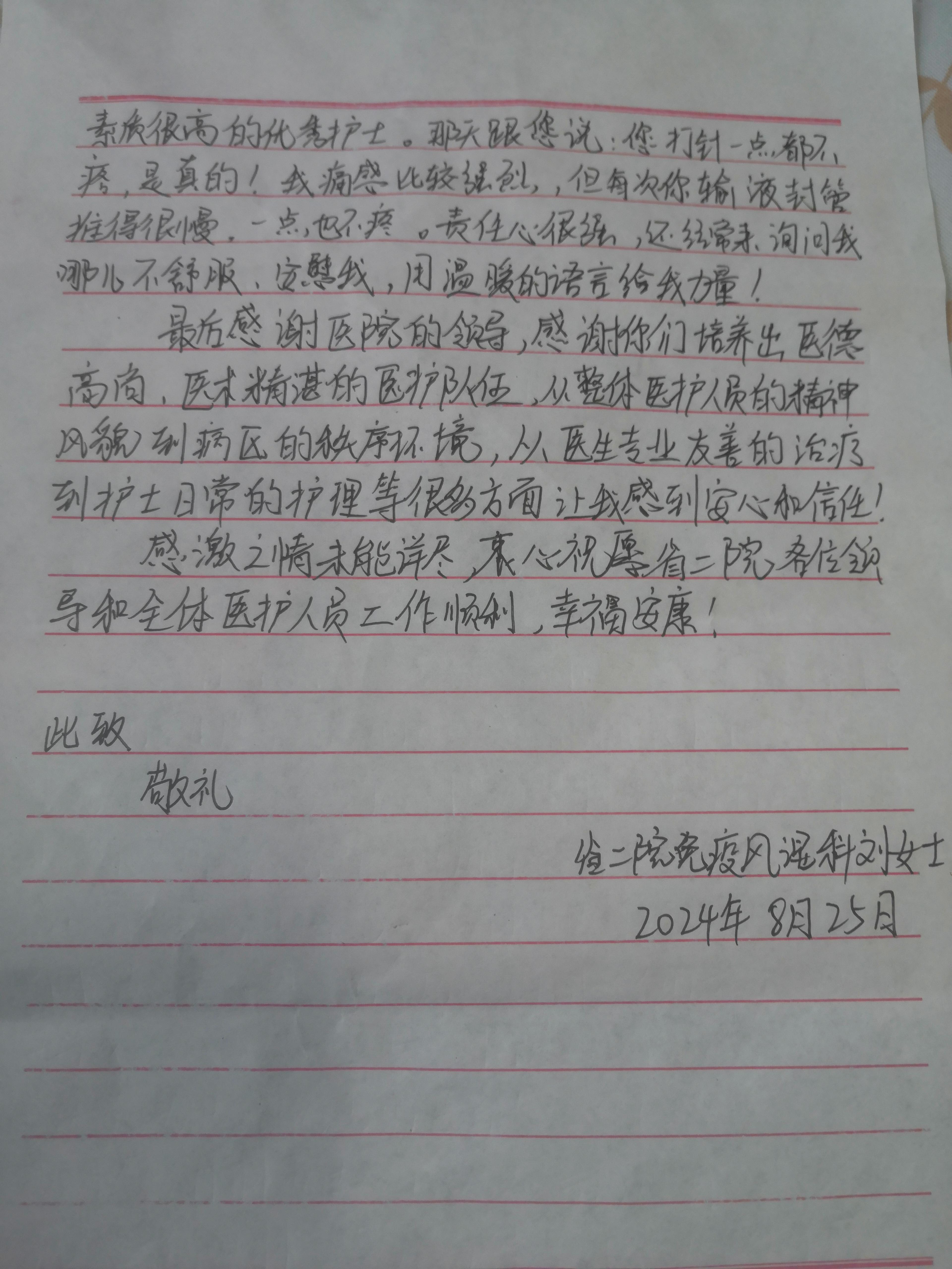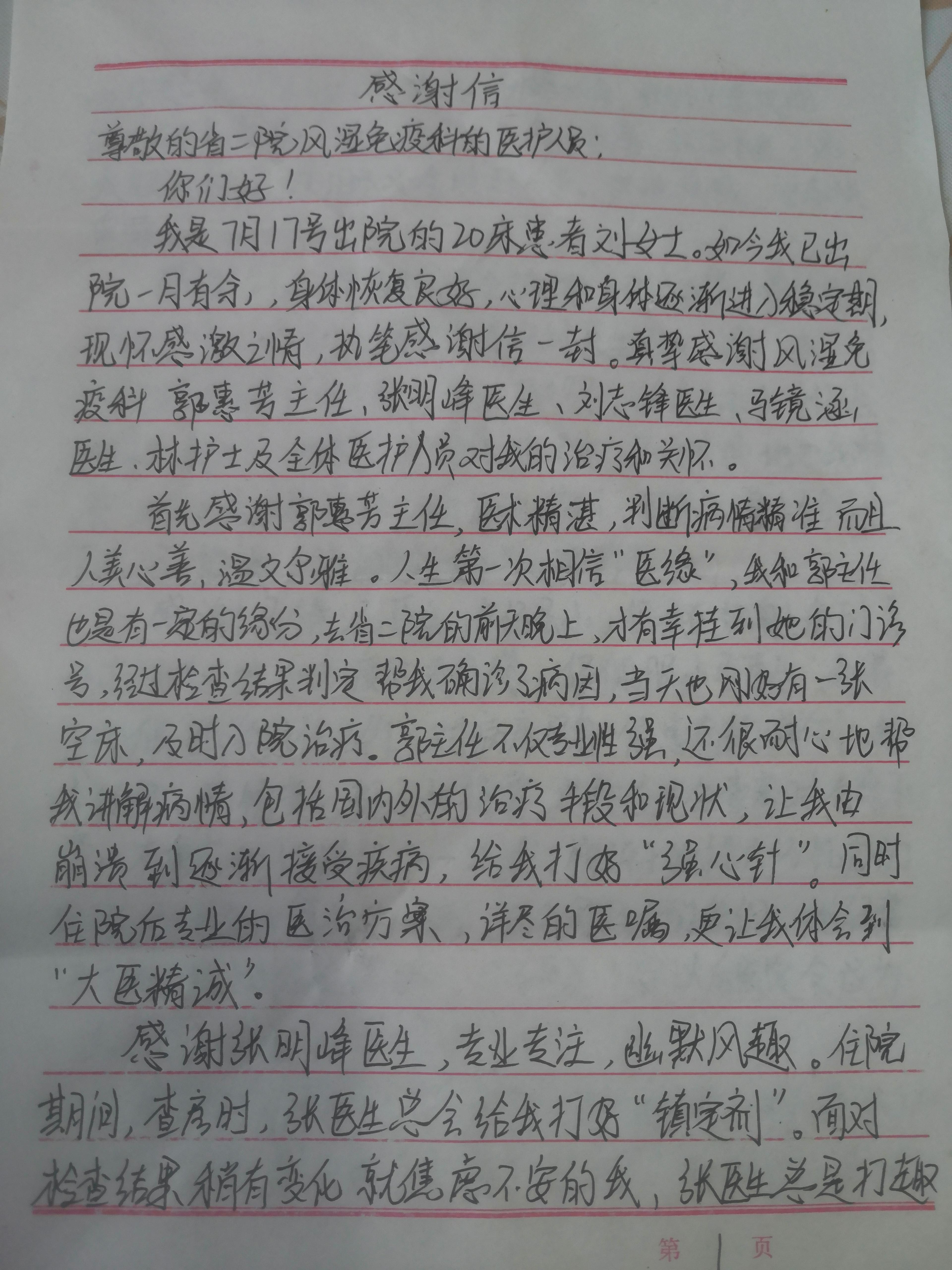 致免疫风湿科郭惠芳主任医疗团队感谢信