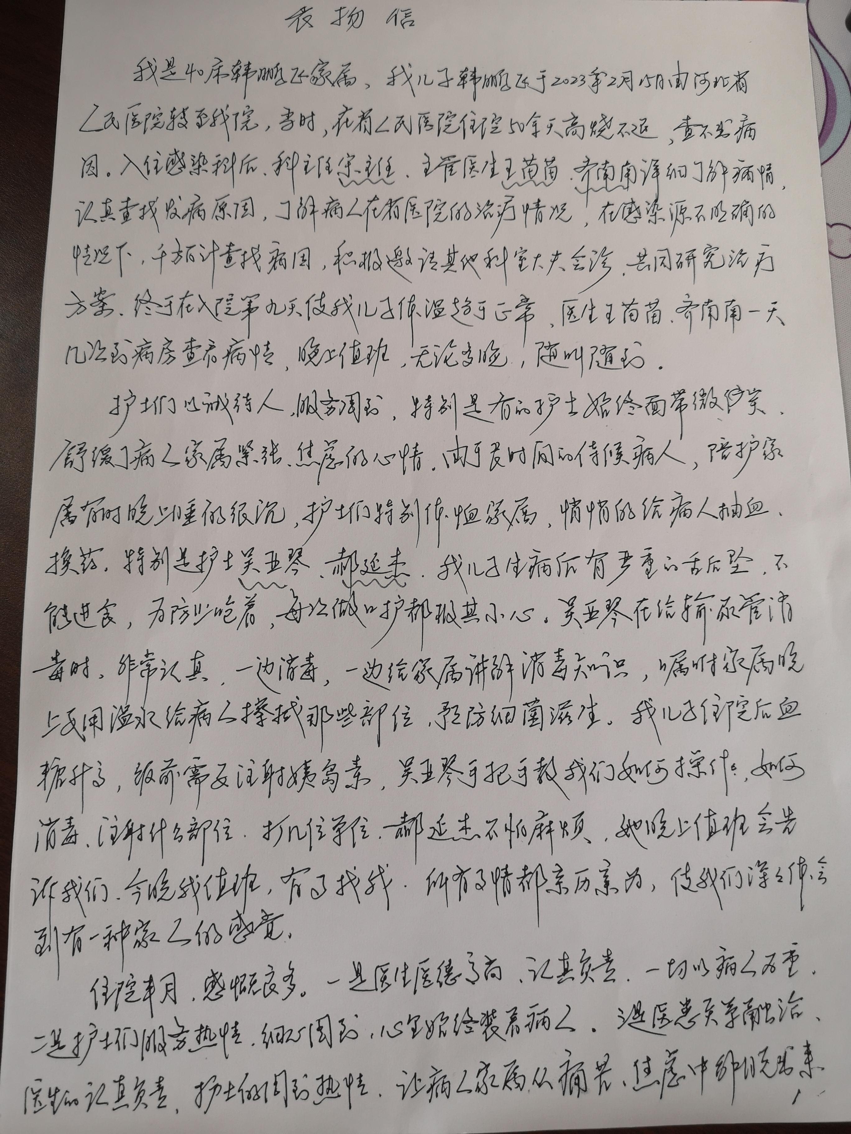 致感染性疾病实验诊断中心李继红主任及烧伤科李桂馨主任的感谢信