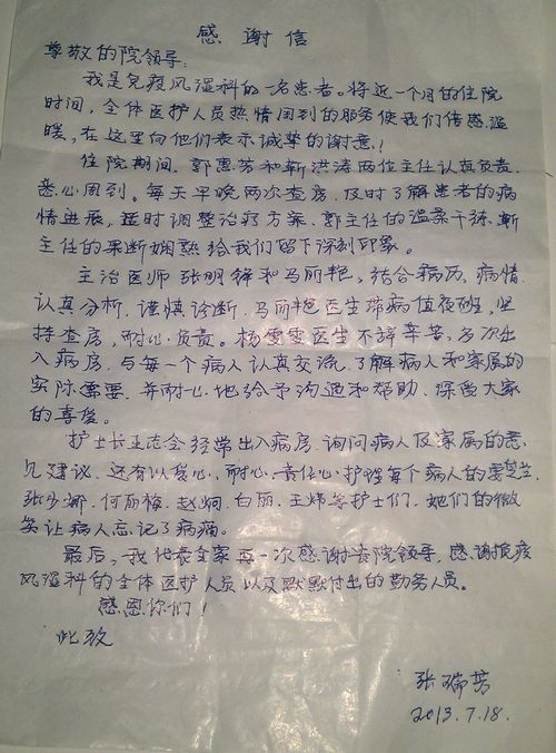 致免疫风湿科的感谢信