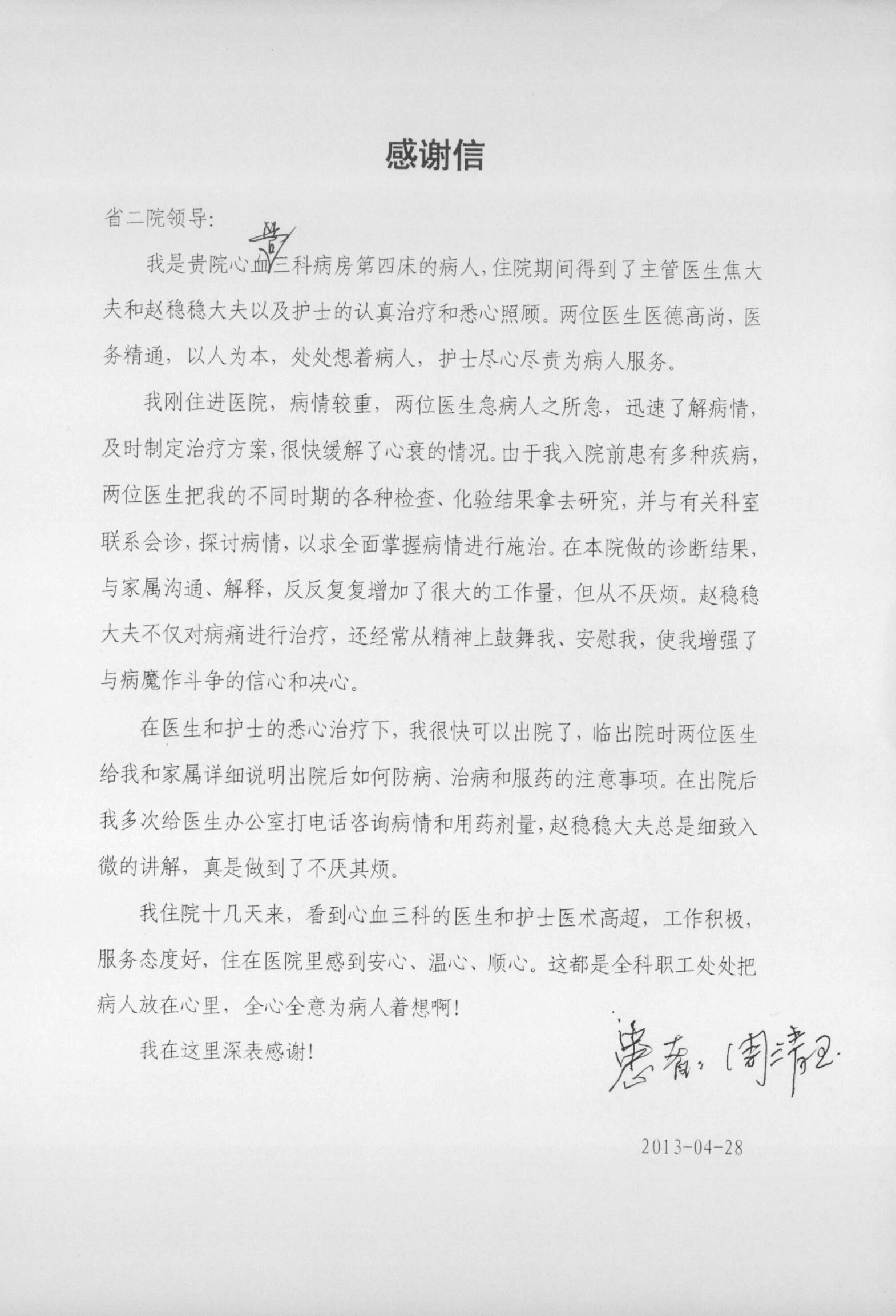 致心血管内三科感谢信