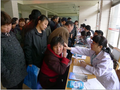 活动当天,气温不到十度,天空一直下着雨夹雪。虽然天气寒冷,但很多患者听说省二院的专家要来,一大早都在县医院病房楼里排起了长队。上午九点,专家们到达县医院后不顾天气寒冷,迅速展开工作。为患者查看X光片、CT等检查结果,详细交待用药的情况和注意事项。县医院相关科室的大夫也与我院专家讨论了疑难患者的病情及治疗方案。当地的老百姓对专家们的义诊活动赞不绝口;下午两点,刚刚结束完隆尧县医院的活动后各位专家顾不上休息,又马不停蹄地赶往河北华龙面业集团有限公司为公司员工及附近村民进行义诊。一天的时间共接待咨询者近500人次,发放宣传资料2000余份。