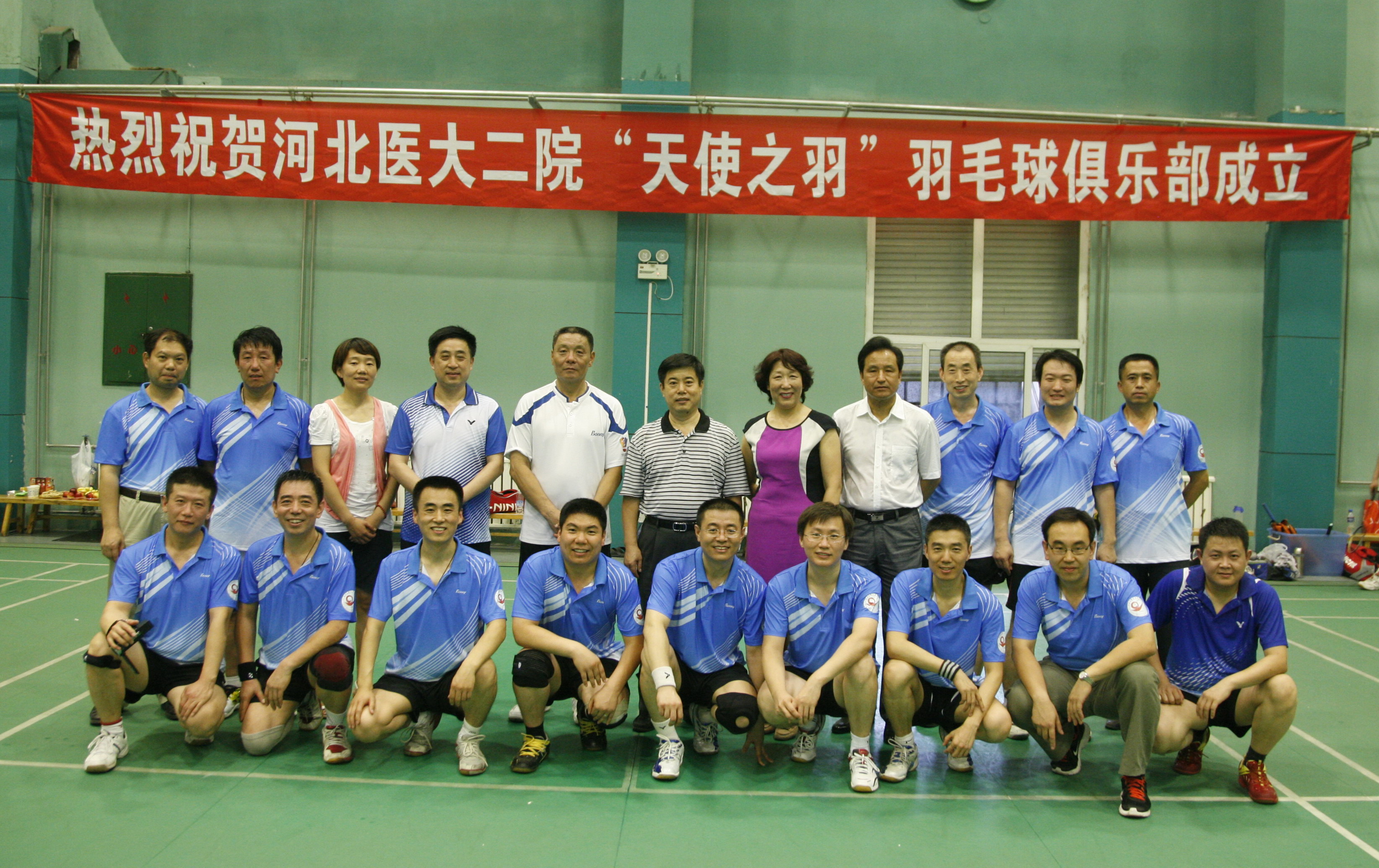 经过近两年的积极筹备,在医院领导的大力支持和各位羽毛球爱好者的共同努力下,6月28日下午5:30分,俱乐部成立仪式在石家庄市铁路体育馆如期举行。大家都着统一的运动服装,整齐而有序。我还记得成立仪式当天,大家都早早地到达了场地,有的帮着悬挂条幅,有的准备着仪式开始的物品,大家都忙得不亦乐乎。河北省乒羽中心副主任、省羽毛球协会副秘书长刘利彦,省羽毛球协会副秘书长、省直工委宣教部部长鲁锋,省羽毛球协会副秘书长、石家庄市少年体校教练李恩普,国家一级裁判胡亚萍等领导应邀出席。我院党委书记张万生,党委副书记、纪委书记、工会主席康诺敏,内分泌科专家、工会副主席、“天使之羽”羽毛球协会会长苏胜偶教授参加了成立仪式。康书记发表了热情洋溢的致辞。她说,***先热烈祝贺“天使之羽”羽毛球俱乐部成立。希望俱乐部能够充分发挥自身优势,开展丰富多彩的体育活动,增强医院内涵文化建设。同时也衷心祝愿俱乐部能够迅速成长,羽翼丰满,越走越远。市少年体校教练李恩普、医院党委书记张万生也分别讲话。张书记还宣布“天使之羽”羽毛球俱乐部正式成立。看到大家兴高采烈的样子,并且都抢着跟领导合影留念,这时我心里也总算踏实了许多。至此,筹备近两年的工作暂时告以段落。