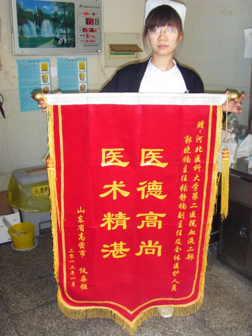 两个月来,化疗、感染、骨髓抑制、出血、脏器损伤等重重考验无不让家属和医护人员的神经紧绷、面色凝重,今天他们终于可以面带微笑的聊聊生活琐事、家长里短,喜悦之情溢于言表。“我不善表达,锦旗代表了我对你们的感激之情,谢谢你们,辛苦啦!”,老仪质朴的话语流露出***纯真的感情,也是对临床医生护士***大的信任和鼓励,是共建医患和谐关系的***真实注解。