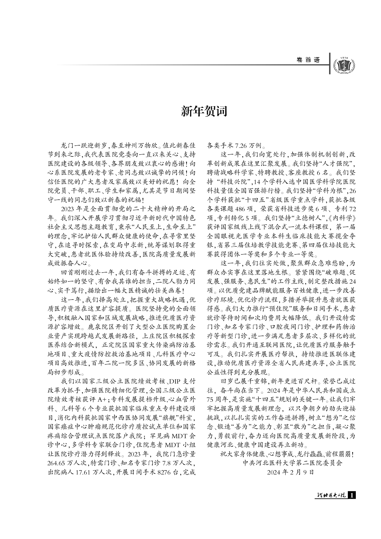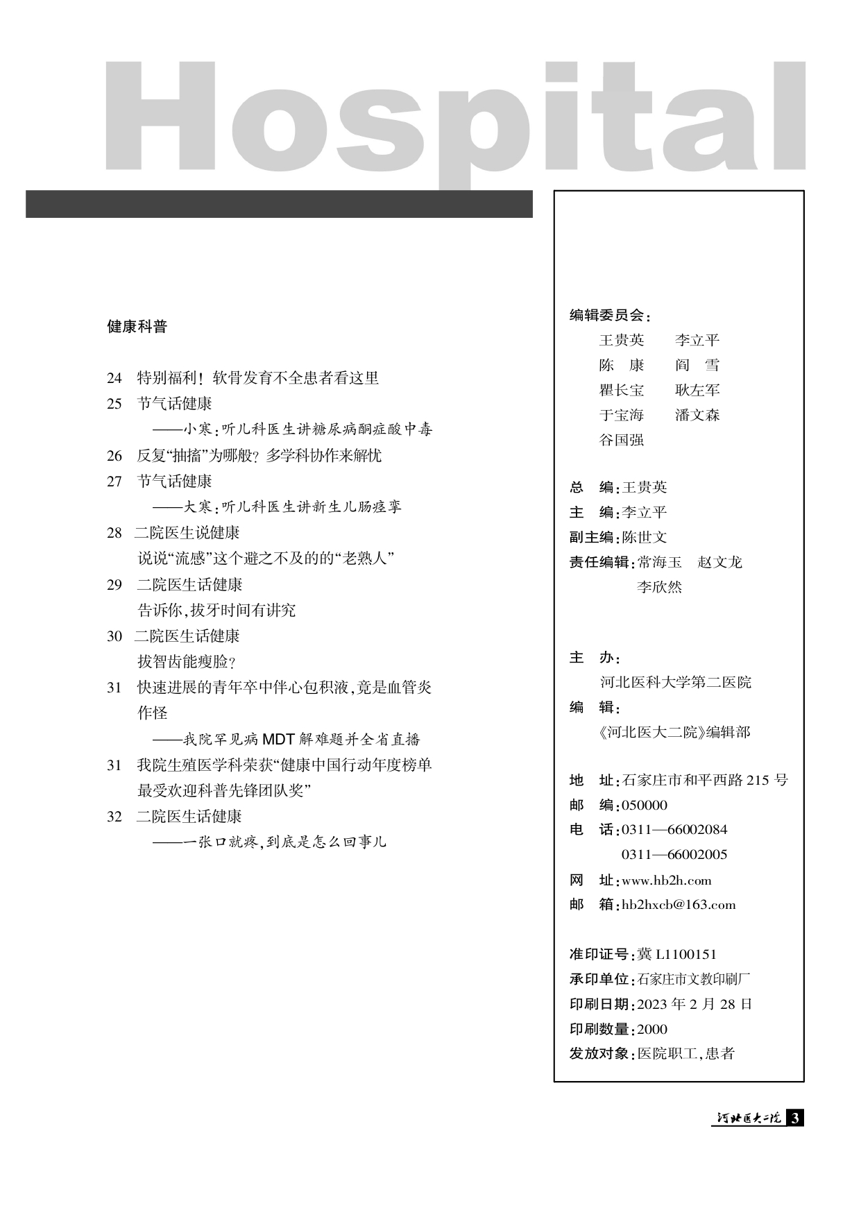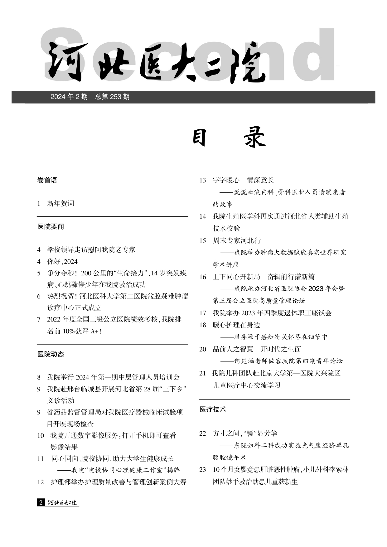河北医大二院院刊总第253期2024年2期