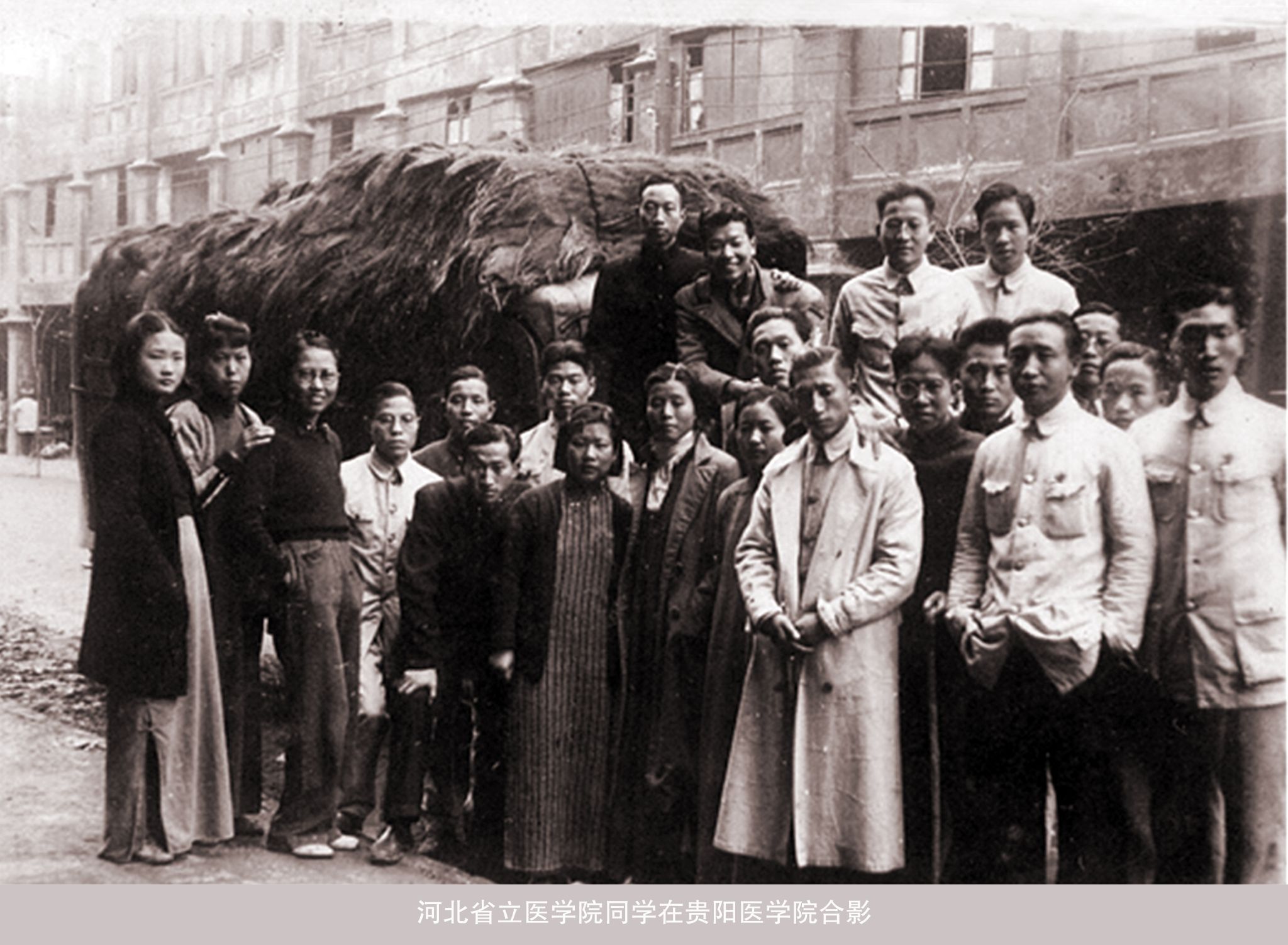 1937年“七七事变”后,河北省立医学院及附属医院被迫停办。大部分师生员工南迁贵阳医学院等单位就职或就读。图为1938年部分师生员工贵阳合影