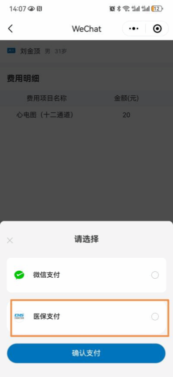 4. 选择支付方式——医保支付