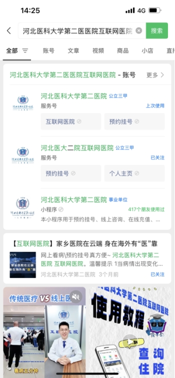 1. 微信搜索【河北医科大学第二医院互联网医院】小程序