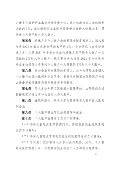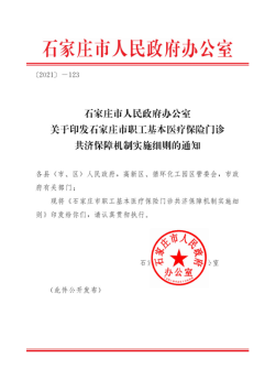 为进一步健全互助共济、责任共担的职工基本医疗保险(以下简称职工医保) 制度,更好解决职工医保参保人员门诊保障问题,切实减轻其医疗费用负担,石家庄市人民政府办公室印发《石家庄市职工基本医疗保险门诊共济保障机制实施细则》,2022 年1月1日正式执行。