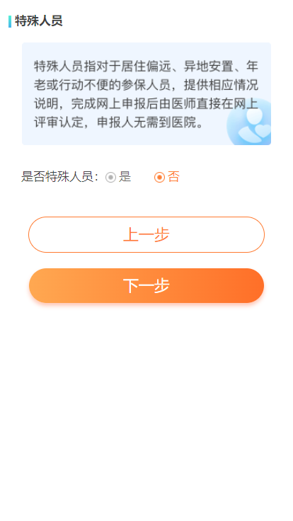 STEP05选择“为他人申报”需要进行患者身份验证,填写完点击“下一步”;如果是本人申报,无需验证直接进入“下一步”