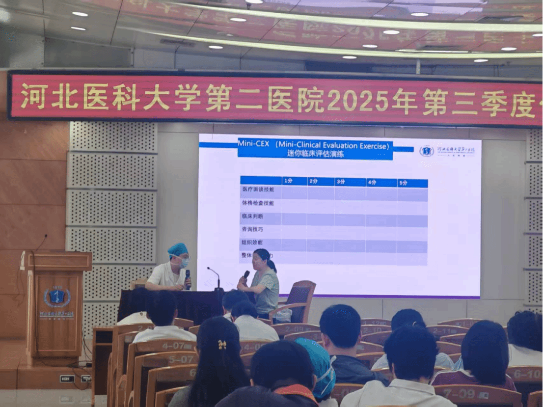 康复医学科科室教学主任曹慧芳与外科科室教学主任李冬瑞,结合北京形成性评价专项学习经历,通过现场模拟演示,深入解读了形成性评价在住培中的实践应用。形成性评价聚焦住院医师在真实临床场景中的综合能力,涵盖临床技能、沟通协作、职业素养等维度,其核心价值在于通过即时反馈促进学员进步。
