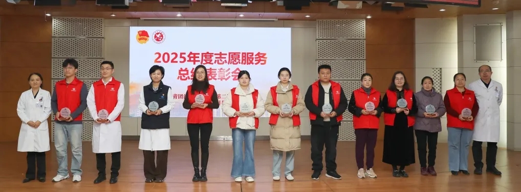 在第40个国际志愿者日来临之际,我院以“二院志愿行 温暖你我他”为主题,召开2025年度志愿服务表彰工作会,总结志愿工作成果,表彰先进典型,进一步凝聚志愿力量。团省委志愿者工作部周永森,医院相关职能部门负责人、党总支书记及各领域志愿者代表100余人参加会议,领取到医院2025年度志愿服务纪念章。