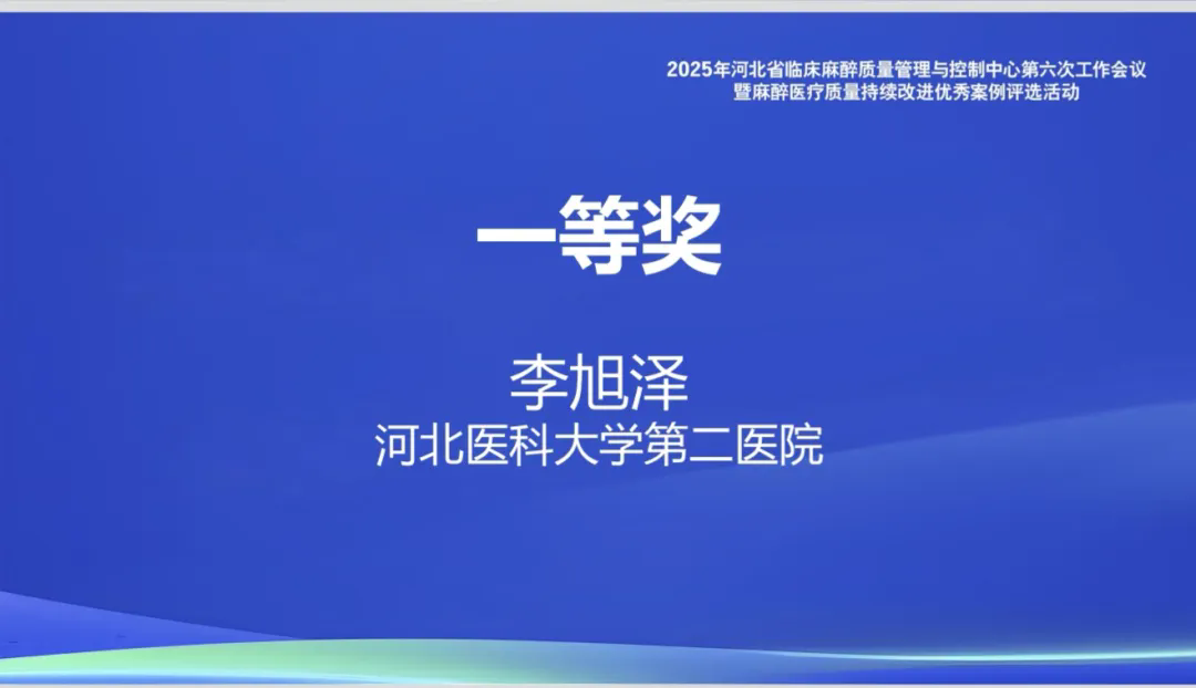 为加强麻醉专业医疗质量安全管理,推动围术期诊疗流程规范化,改进2025年专项调研中发现的重点问题,12月5日,河北省临床麻醉质量管理与控制中心第六次工作会议在石家庄召开。会议同期举办了全省首届麻醉专业医疗质量持续改进优秀案例现场评选活动,我院麻醉科李旭泽医生凭借出色案例荣获一等奖。