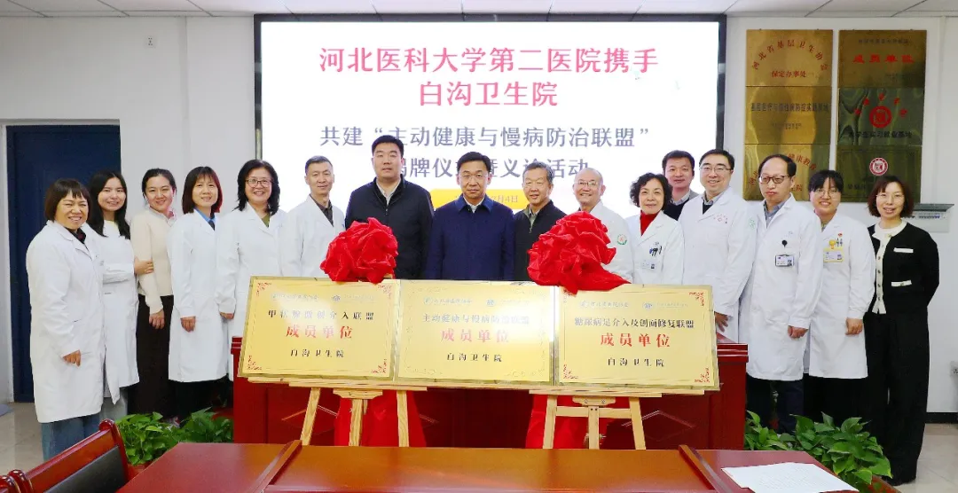 当天上午,我院副院长于宝海率神经内科、内分泌科、心血管内科、健康管理部等科室15名专家,赴白沟卫生院开展以脑卒中、糖尿病、心血管疾病等基层常见多发慢病的防治及基层医疗技术提升为主题的联盟授牌与义诊活动。