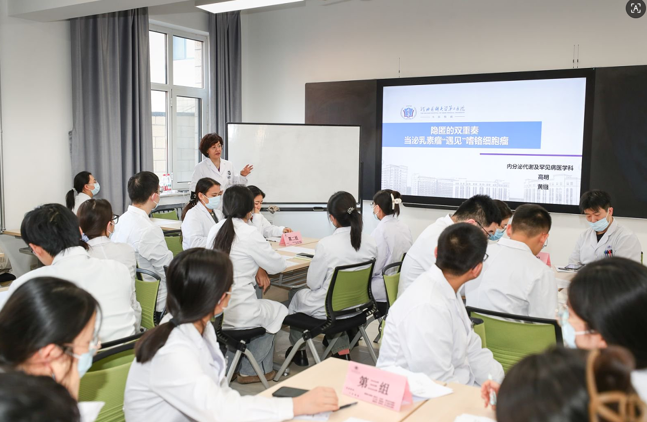 当泌乳素瘤与嗜铬细胞瘤“相遇”,闭经、高血压、视物重影三个看似孤立的症状,编织出一场极具挑战性的临床谜题。我院内科专业基地以这场“隐匿的双重奏”为蓝本,开展了一场沉浸式烧脑探案系列查房讨论,在抽丝剥茧的诊疗推理中,不仅破解了罕见病的诊断难题,更通过精准对接住培医生需求的讨论模式,让临床思维训练落地生根。