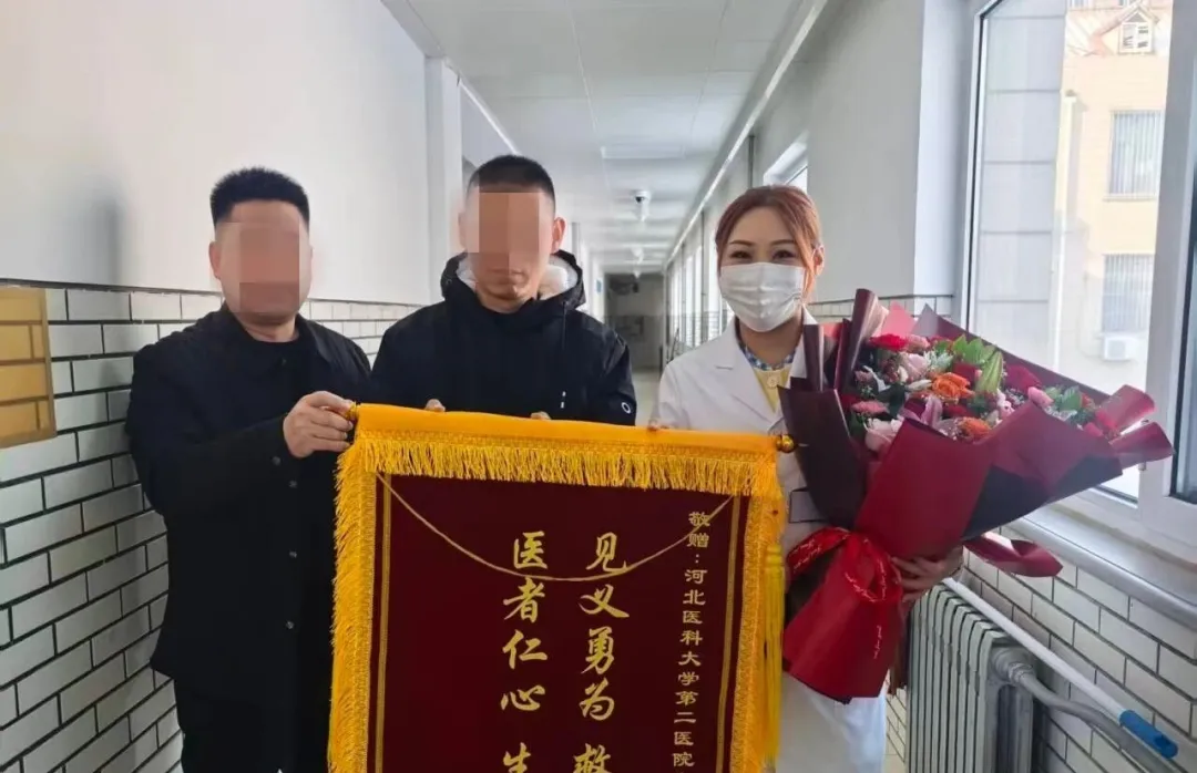 两个月后,在我院毕教办办公室里,一位中年男子捧着鲜花和锦旗四处打听:“请问耿泽西是在这里吗?我是来谢救命恩人的!”他正是当时的货车司机,经过两个月治疗已完全康复。住院期间,他始终记挂着那位高速上的救命恩人,可当时只听清“耿泽西”这个名字,只知道对方在石家庄的医院工作。为了找到她,他的家人一家医院一家医院地问,终于在我院找到了耿泽西。