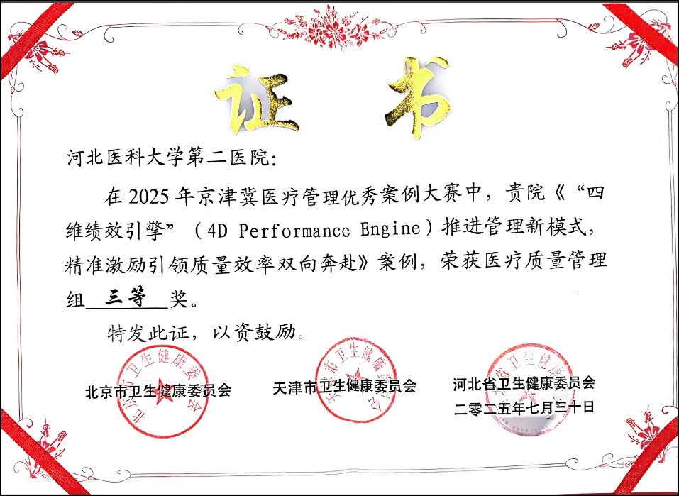 7月30日,在刚刚落幕的2025年京津冀“医疗管理优秀案例大赛”上,河北医科大学第二医院团队凭借卓越的管理实践与出色的现场表现,一举斩获一等奖、三等奖及优秀组织奖三项重磅荣誉,充分彰显了我院在医疗管理领域的创新活力与深厚实力。