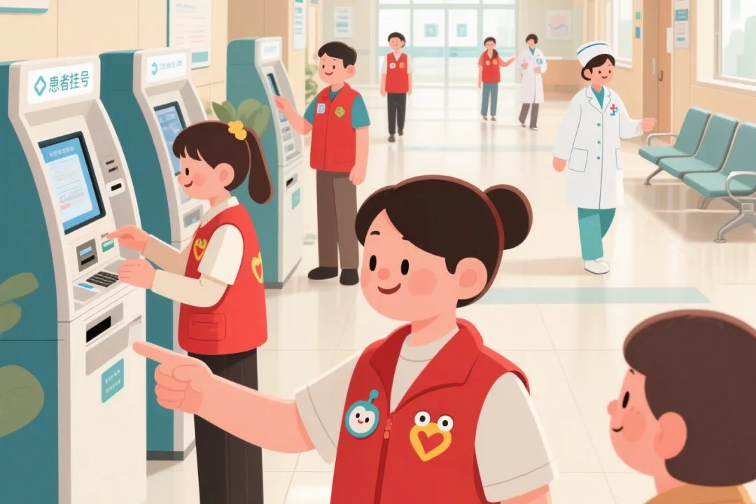 3.穿上红马甲,在医院门急诊为不熟悉医院环境、不了解就医流程、不会使用自助机等需要帮助的人们提供爱心服务。