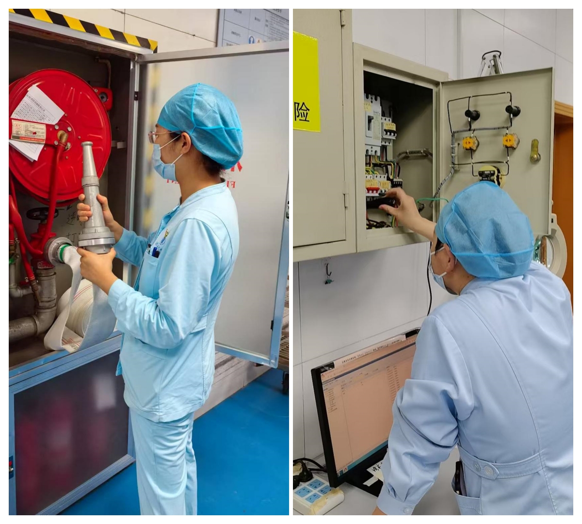 此次消防演练的核心内容聚焦于科室风险。为了真实还原火灾救援场景,在工作区域高度模拟了火灾现场,开展了灭火救援演练。演练内容包括消防栓的使用、灭火器的实际操作(重点针对灭菌器周边、包装区酒精存放点等关键区域)以及突发"火情"的应急处置。