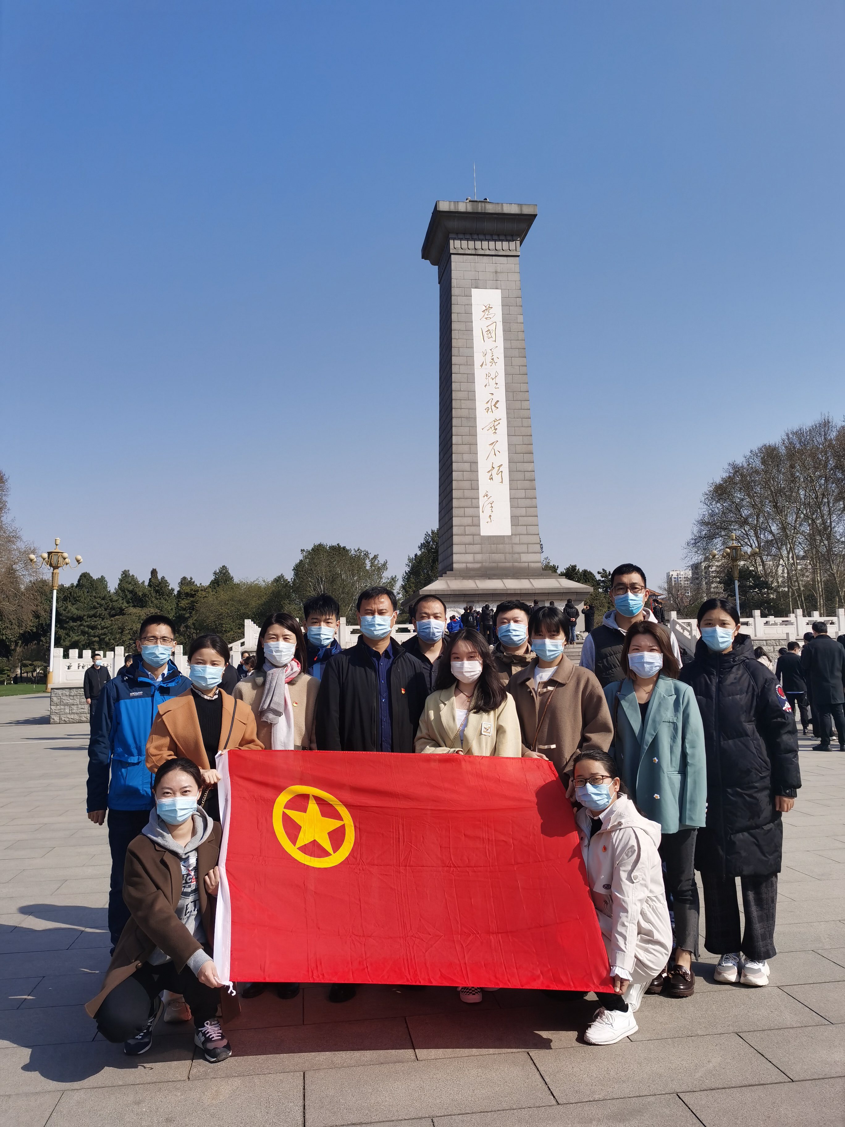在纪念碑前,团员代表向革命烈士献花,致以最崇高的敬意。随后,各位团员肃立碑前,鞠躬默哀,表达对革命烈士的敬仰与怀念之情。瞻仰着英烈的雕像,每一个人仿佛置身于那个战火连天的年代,这些平凡而伟大的人,饱含着对祖国和人民的赤子之心,为革命事业献出宝贵的生命。