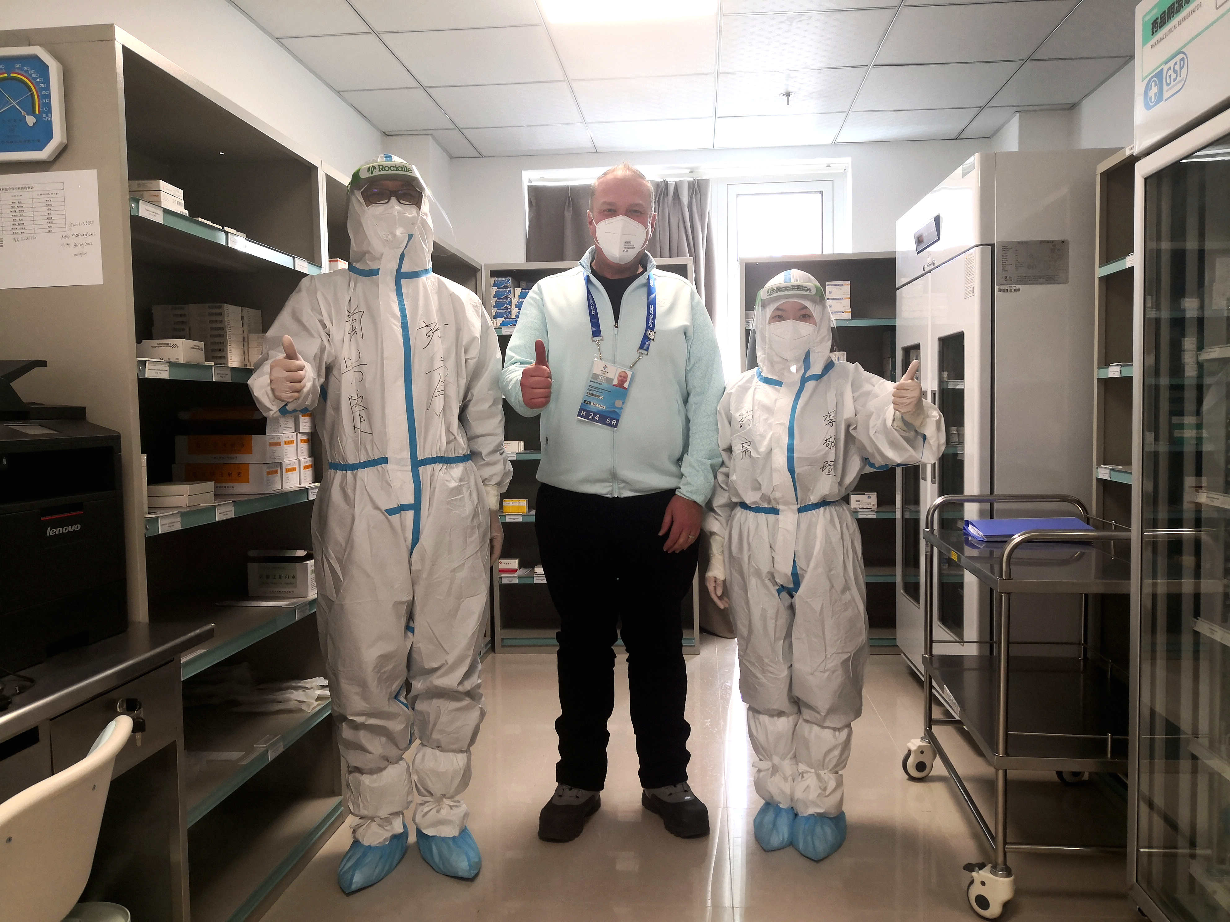 国际奥组委药学专家Mark Stuart多次到冬奥村综合诊所药房考察工作。Mark对药房干净整洁的环境、药品标签中英文双语标注、WADA禁用药品单独存放以及阿片类药品、高警示药品的明显标识等表达了充分的肯定,对药房的发药流程、各项工作记录及抢救车药品准备工作都赞赏有加,尤其是药品用药信息贴签,Mark表示“没有条件,你们创造条件,依然完成得很出色”,并向药师们竖起了大拇指。