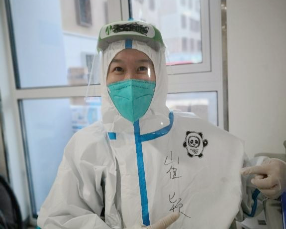 每次我和柴茜楠大夫出诊时,都会在防护服上手绘冰墩墩,这不仅体现出医学人文关怀,拉近和患者之间的距离,同时这也成了综合诊所一道靓丽的风景线。虽然在就诊过程中,我们戴着防护面屏和口罩,但我们始终保持微笑。我们用温和的语言,精湛的技术,使所有来冬奥村综合诊所就诊的患者都感受到温暖和信任。我们是爱的传递者,展现的不仅是二院风采,同时也是中国风采。