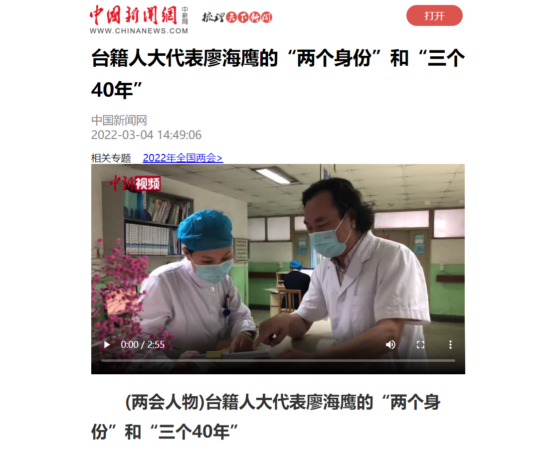 中新社:台籍人大代表廖海鹰的“两个身份”和“三个40年”