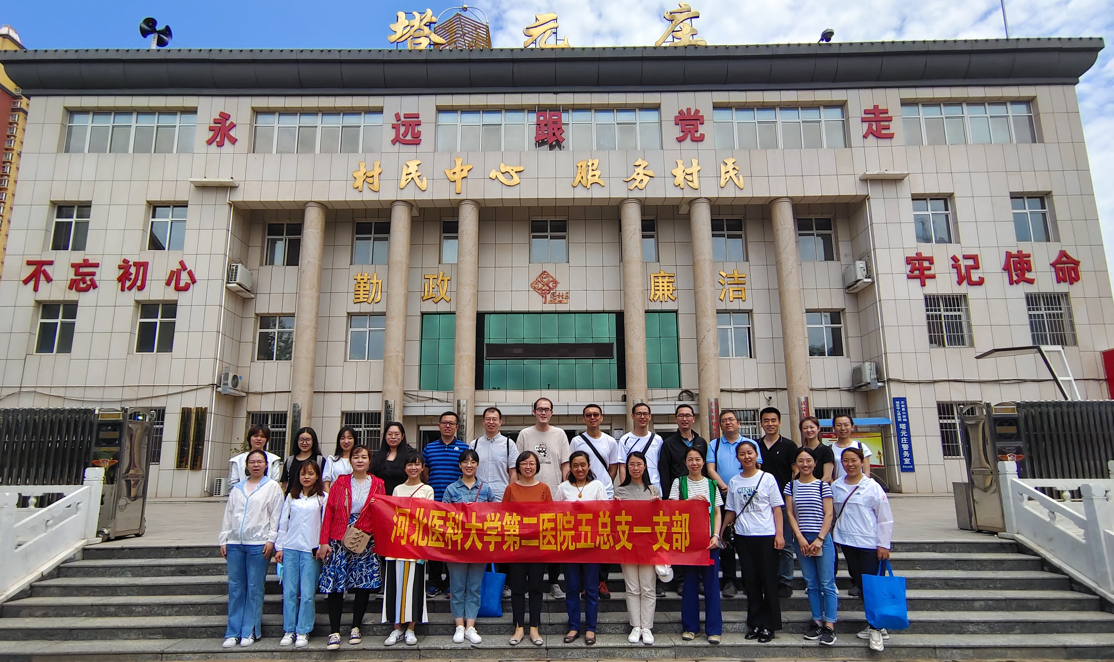 百年大党正年轻,风华正茂待复兴;追忆党史铭记苦,我将无我不负民。在建党一百周年之际,为深入开展党史学习教育,扎实推进“我为群众办实事”实践活动,6月10日,第五党总支第一党支部(药学部党支部)组织党员赴正定县塔元庄村开展义诊及参观活动。