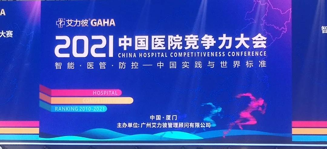 4月17日,由艾力彼医院管理研究中心举办的“2021中国医院竞争力大会”在厦门举行,隆重发布“2020年顶级医院100强”等排行榜。我院位列“顶级医院100强”第61位!