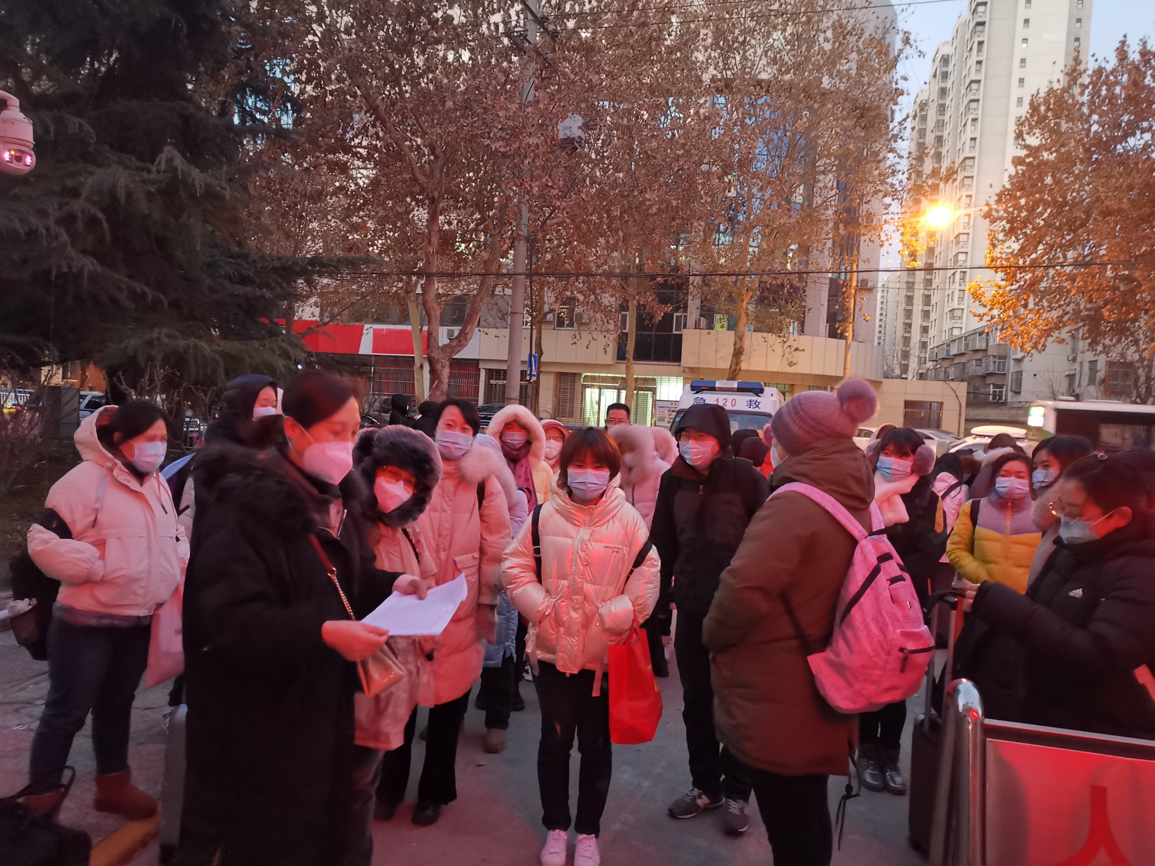 1月5日18:00,护理部接到医院通知,需要紧急调派30名护理人员协助新华区进行社区核酸检测,参加配合全市全员核酸检测的重大部署。闻令而动,护理部全体成员立即分头展开行动,与各病区护士长取得联系,商讨确定调配人员;19:30,成员具体信息名单统计完毕;21:00,护理部建立核酸采集微信群,通知护士长和抽调护士随时做好出征准备。1月6日凌晨0:30接紧急通知,要求协助社区核酸检测的30名护理人员早7点在新华区政府集合;7:00所有人员准时到岗,二院速度在护理同志们的身上得到了完美诠释。