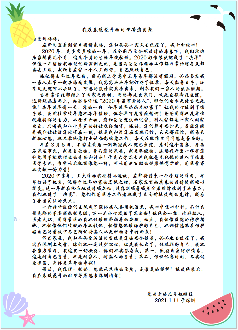 纸短情长,家书思安,封印在责任中的爱化为声声叮嘱、句句祝福。让我们同盼春暖,共待花开。