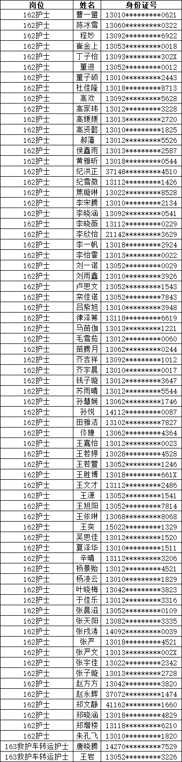 附:应聘护理岗位进入体检环节名单