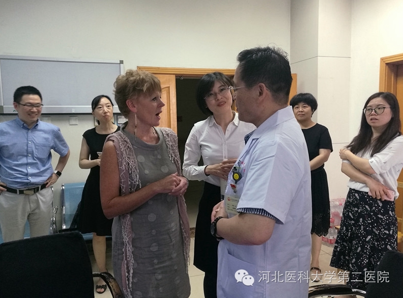 6月25日,欧洲呼吸护理协会主席、英国女王护理学院成员、健康教育首席执行官 Monica Fletcher教授来到我院呼吸与危重症医学一科,针对呼吸系统慢病管理开展学习交流,呼吸与危重症医学一科主任阎锡新教授带领科室骨干、护士长参加了此次会议,慕名而来的还有省内各医院护士长、护士,本次会议开通远程直播,线上共有 20家医院的127位老师聆听,会后Monica Fletcher教授同线上老师们视频连线,在线讨论热点话题,并一一回答大家提出的问题。