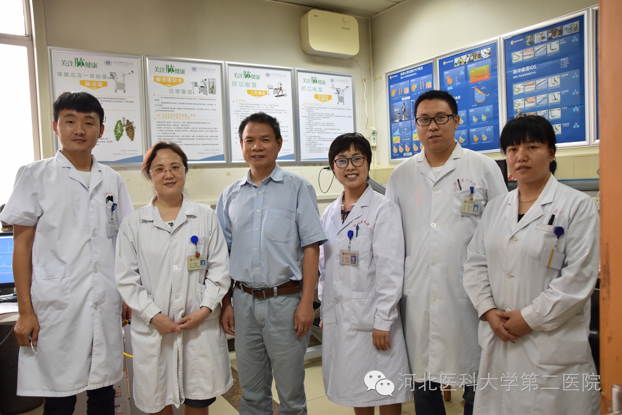 呼吸与危重症二科肺功能室作为全国肺功能规范化培训中心之一,是中国呼吸医师协会—肺功能与临床呼吸生理工委会第一届副主任委员单位,开展了肺通气功能、肺容量、小气道功能、肺弥散功能、气道阻力、气道反应性、气道可逆性、心肺运动试验、强迫振荡肺功能、呼出气一氧化氮(FeNO)、过敏原筛查、BALF细胞计数等检查项目。此次通过肺功能规范化检查培训工作,我们将继续肩负起肺功能规范化培训的责任,和全国各培训中心一起推动“像量血压一样检查肺功能”的SMILE项目,进一步提高肺功能检查技术水平。