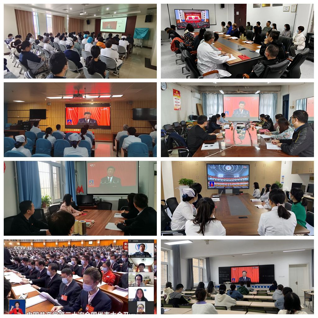 中国共产党第二十次全国代表大会10月16日上午在人民大会堂开幕。习近平代表第十九届中央委员会向党的二十大作报告。医院党委精心组织,全体院领导、党委委员,党总支书记,相关职能部门负责人在医院会议室集体观看党的二十大开幕会直播。在保证正常医疗秩序的同时,积极组织广大党员干部、职工、学生通过电视、网络媒体、移动终端等多种渠道集中观看,认真聆听习近平总书记报告。