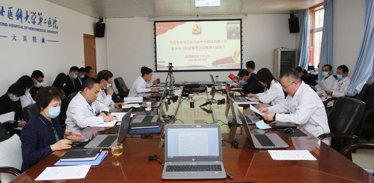 3月14日下午,医院党委召开理论学习中心组会议,专题学习习近平总书记在中共中央政治局第三次集体学习时的重要讲话精神。全体院领导、党委委员,纪委、组织部、宣传部、院办室、科研处负责同志与党总支书记参加学习。