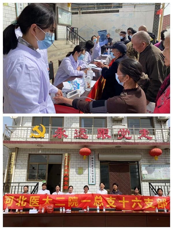 第一党总支第十六党支部书记孟爱宏带领支部党员赴栾城北长村,开展“党旗领航,爱心义诊”活动。活动现场,专家们为前来问诊的居民进行健康检查,细致地分析病因、病情,并向他们耐心讲解卫生保健和用药常识。广大居民通过义诊进一步了解了自身的健康状况,提高了健康意识。