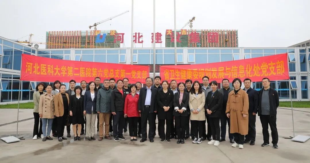 为扎实开展学习贯彻习近平新时代中国特色社会主义思想主题教育,深入学习贯彻党的二十大精神,4月28日上午,我院第六党总支第一党支部与省卫生健康委规划发展与信息化处党支部一同到正定塔元庄和我院正定新区医院建设项目开展以“党建引领 携手共建”为主题的党支部联学共建活动。
