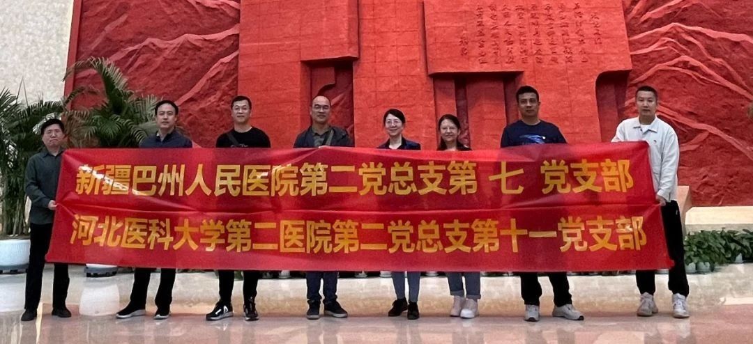 新疆巴州人民医院是我院对口援助单位。近日,巴州人民医院第二党总支第七党支部书记毛少磊带领支部党员来我院,与第二党总支第十一党支部党员们进行基层党建交流活动,会后党员同志们一起到石家庄解放纪念馆参观学习。